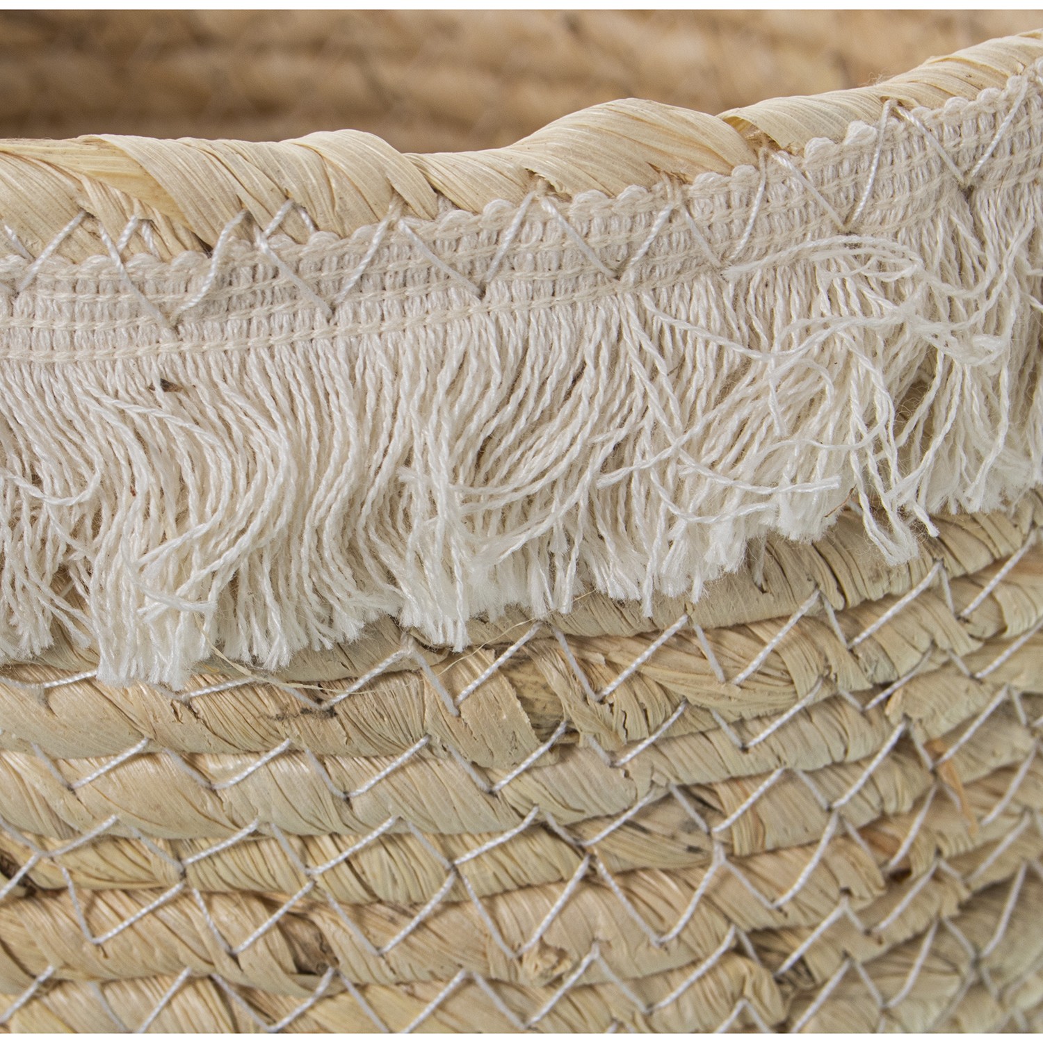 Home » Decoration Other » Set 3 Natural Corn Leaves Baskets W/ Cotton Fringes/ Handless- Ø30x28+ø27x24+ø24x20cm