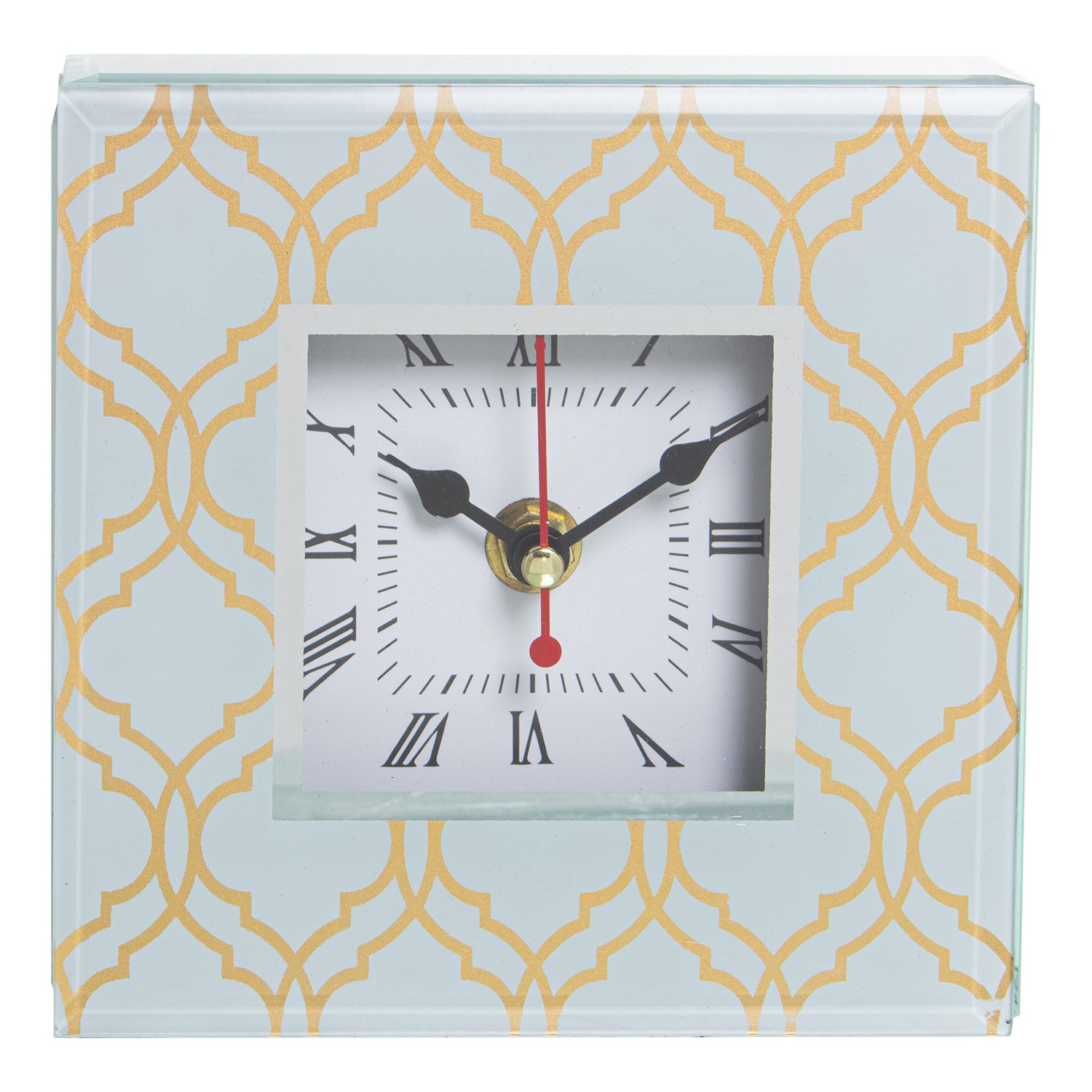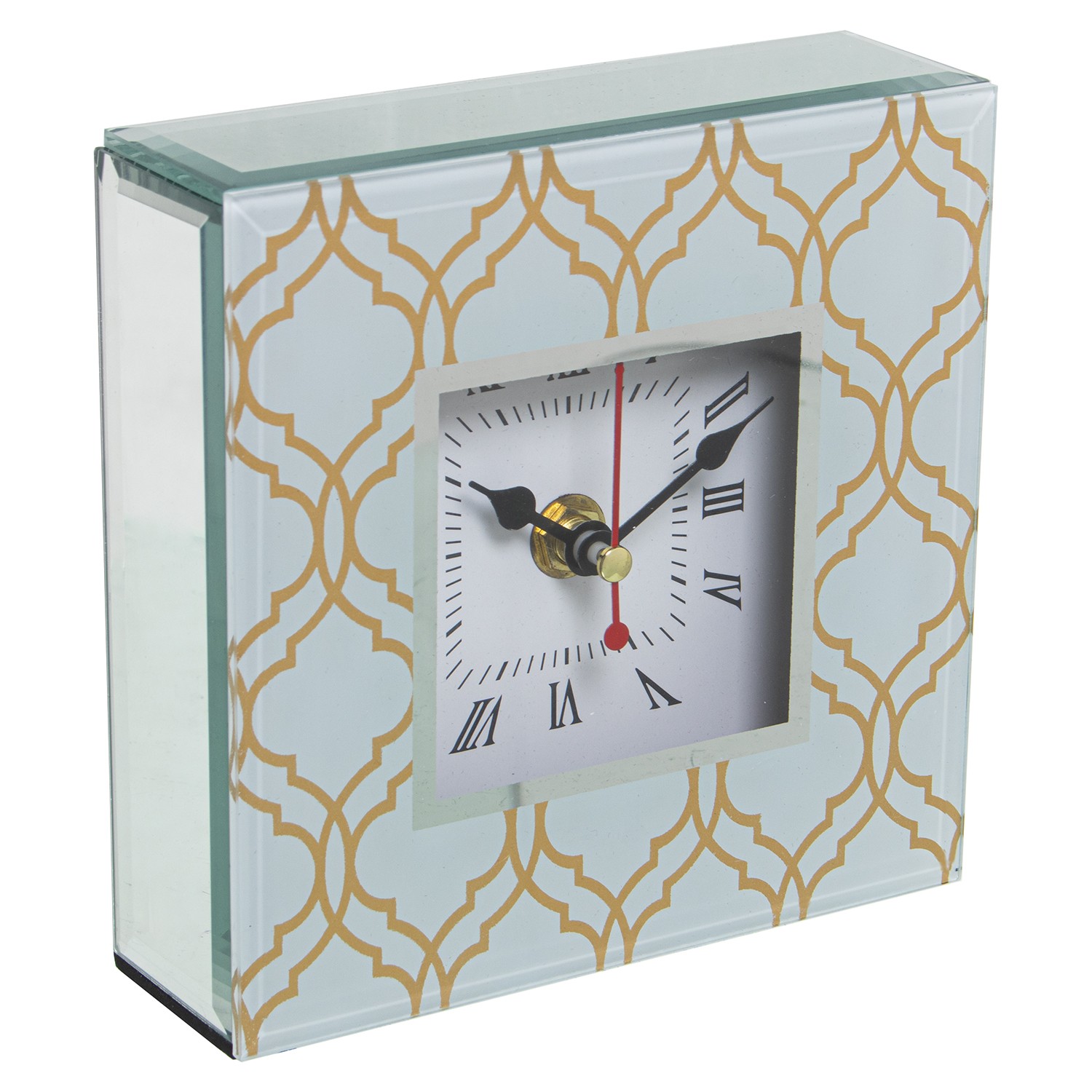 » Green And Golden Glass And Wooden Tabletop Clock- 14x4,5x14cm,1xaa No Inclu