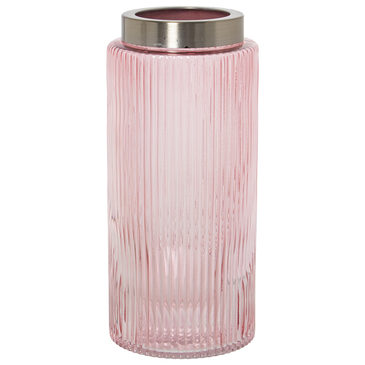 » Pink Glass Vase With Golden Edge- Ø12x26cm, Boca Metal:ø9cm