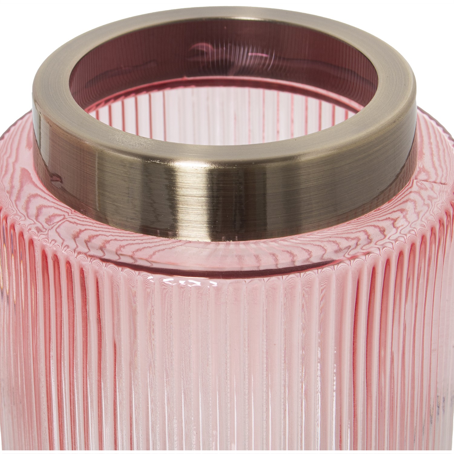 Pink Glass Vase With Golden Edge- Ø12x20cm, Boca Metal:ø9cm