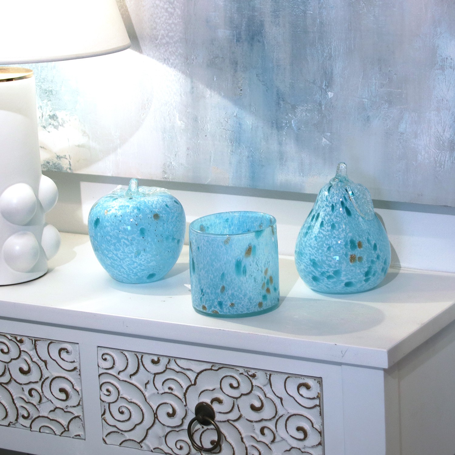 Mottled Light Blue Glass Apple Figurine- Ø13x13cm