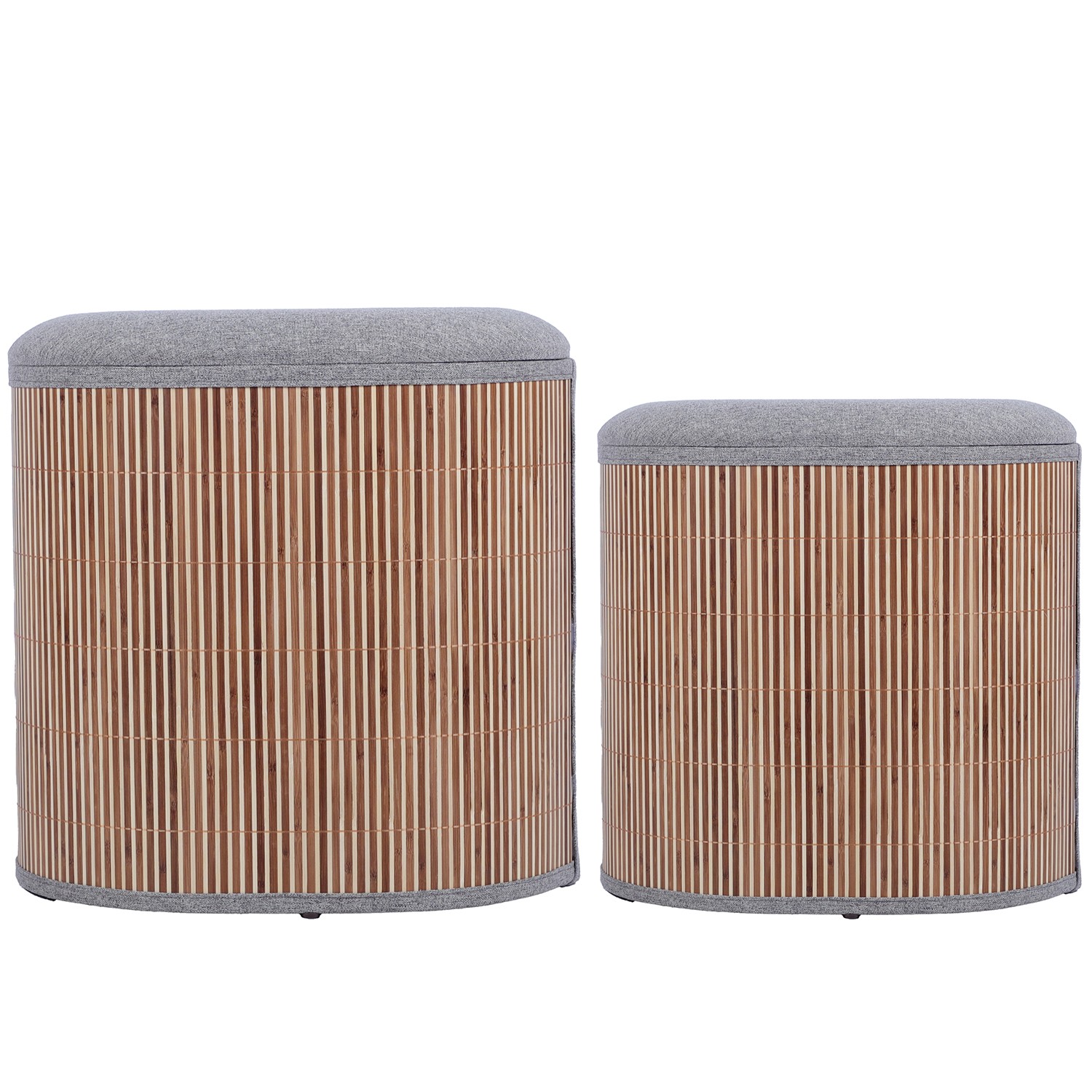 » Wooden/bamboo/grey Fabric Pouffe