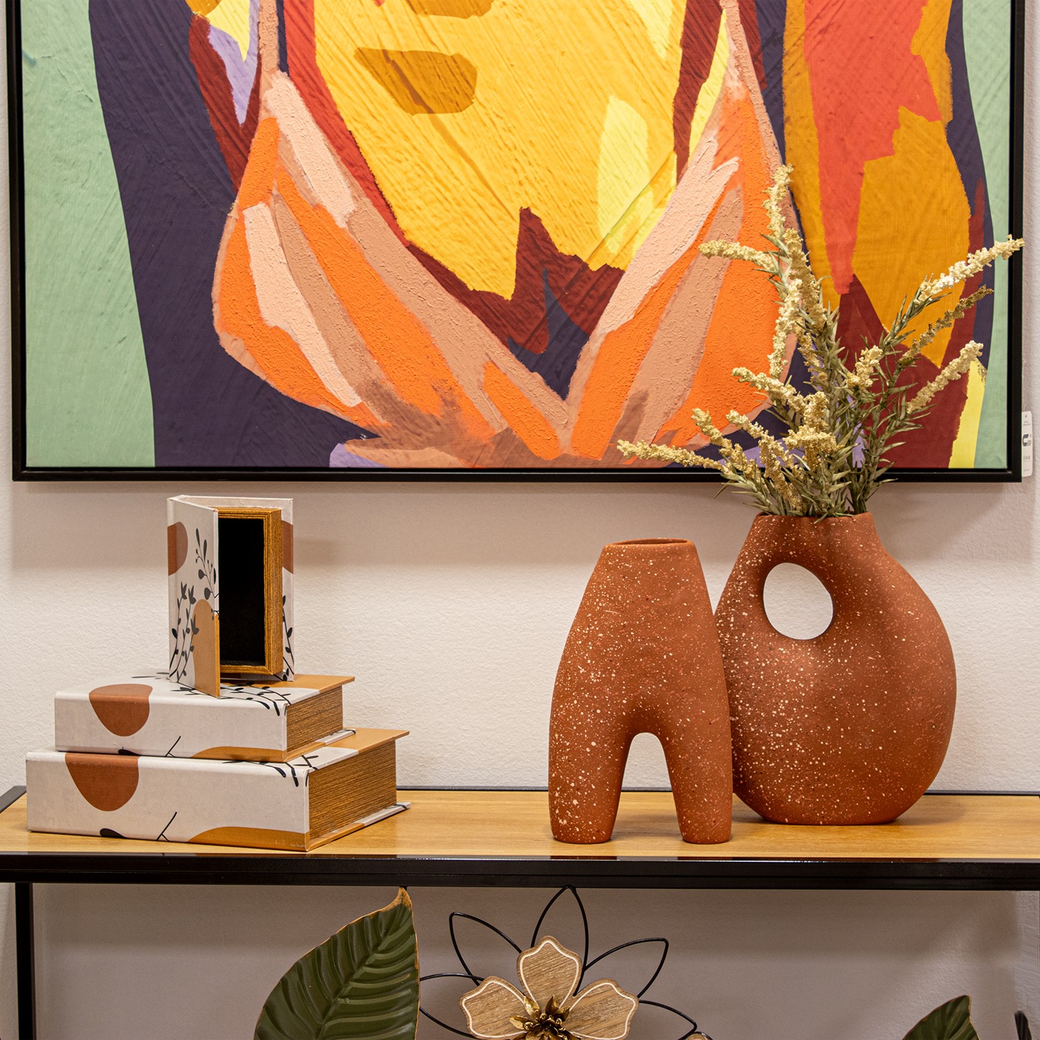 » Set 3 Decorated Wooden Book Boxes - Dm/polyester Canvas- 30x24x8+24x18x6+18x12x4cm