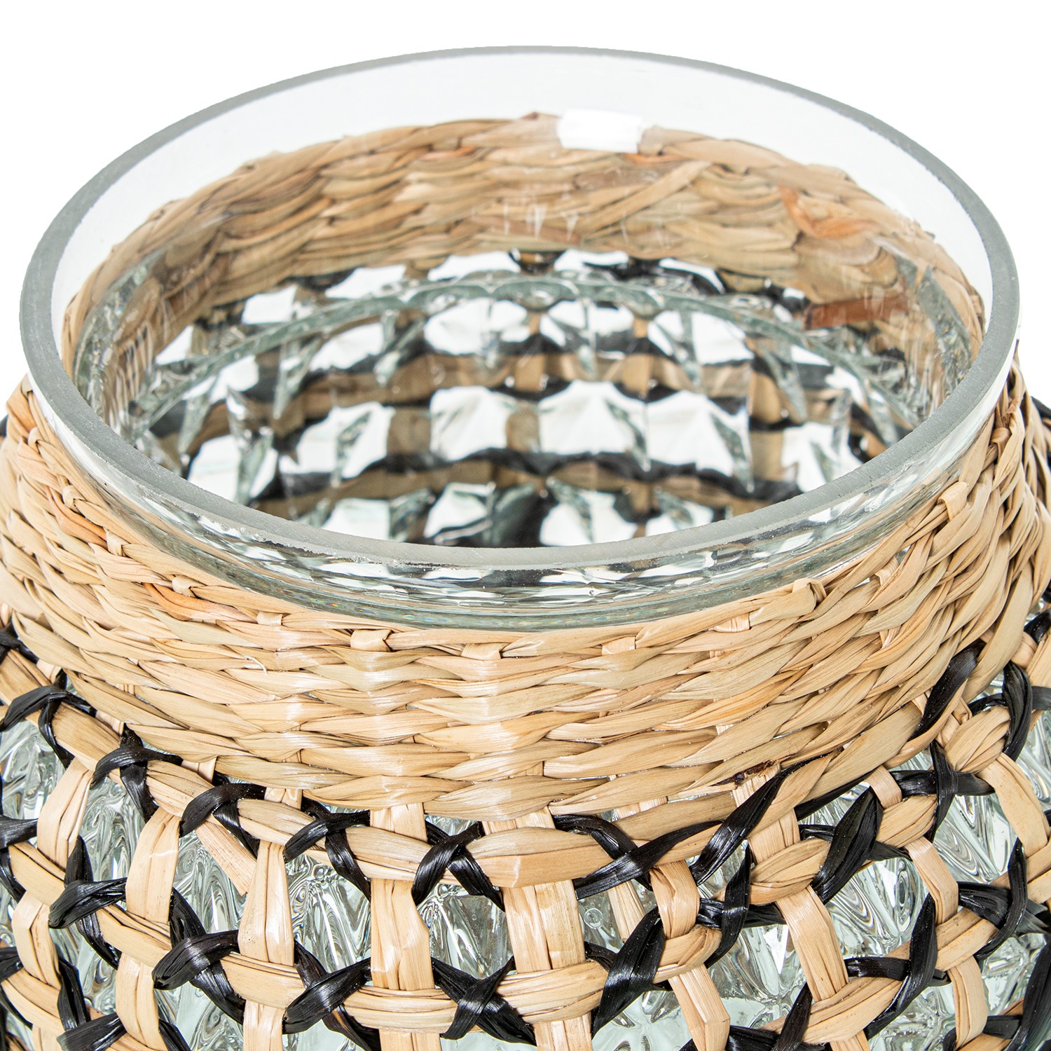 Glass/sea Grass Candle Holer Vase Ø14x25cm
