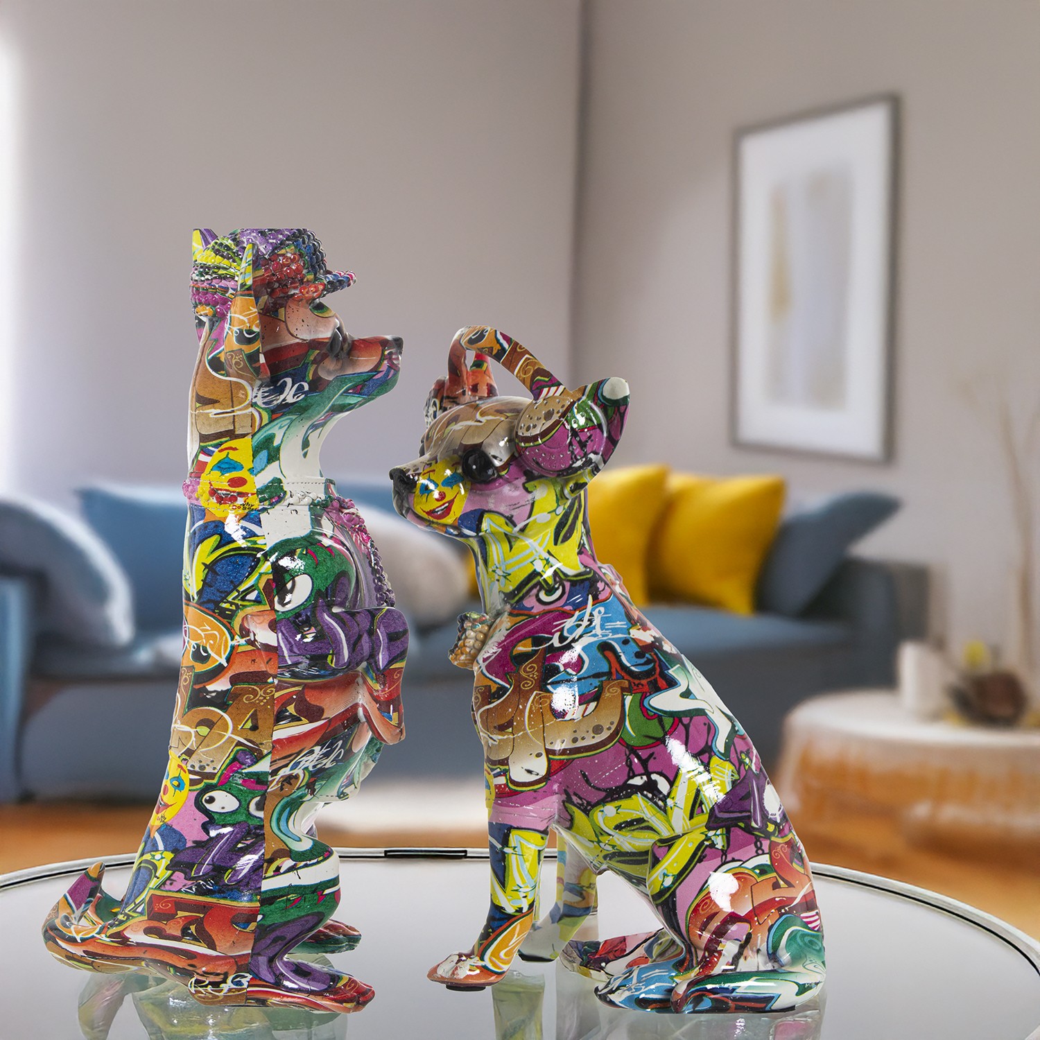 Multicolor Graffiti Resin Dog Figure- 14x11x30cm