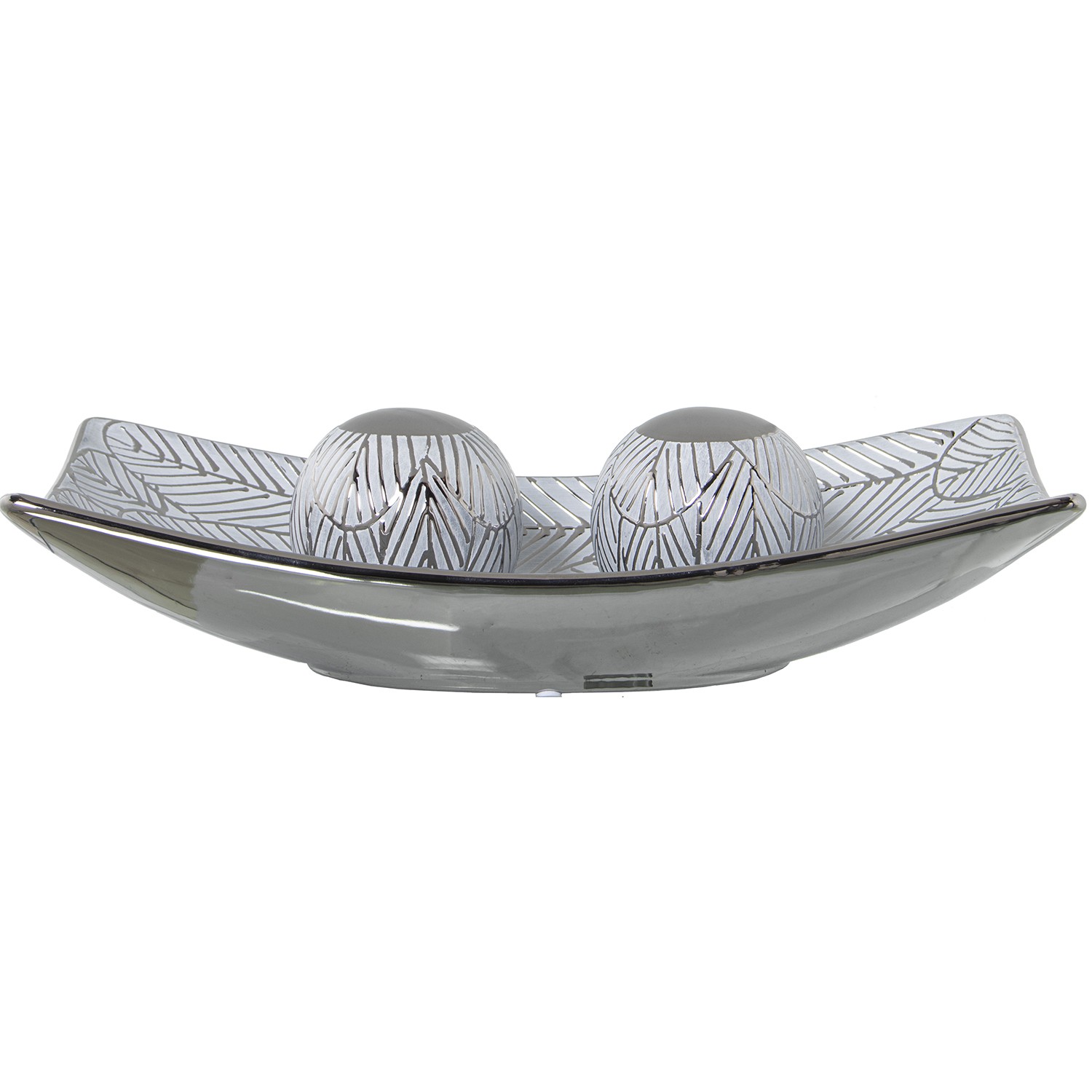 » White And Silver Ceramic Rectangular Centerpiece- _40x20x9cm
