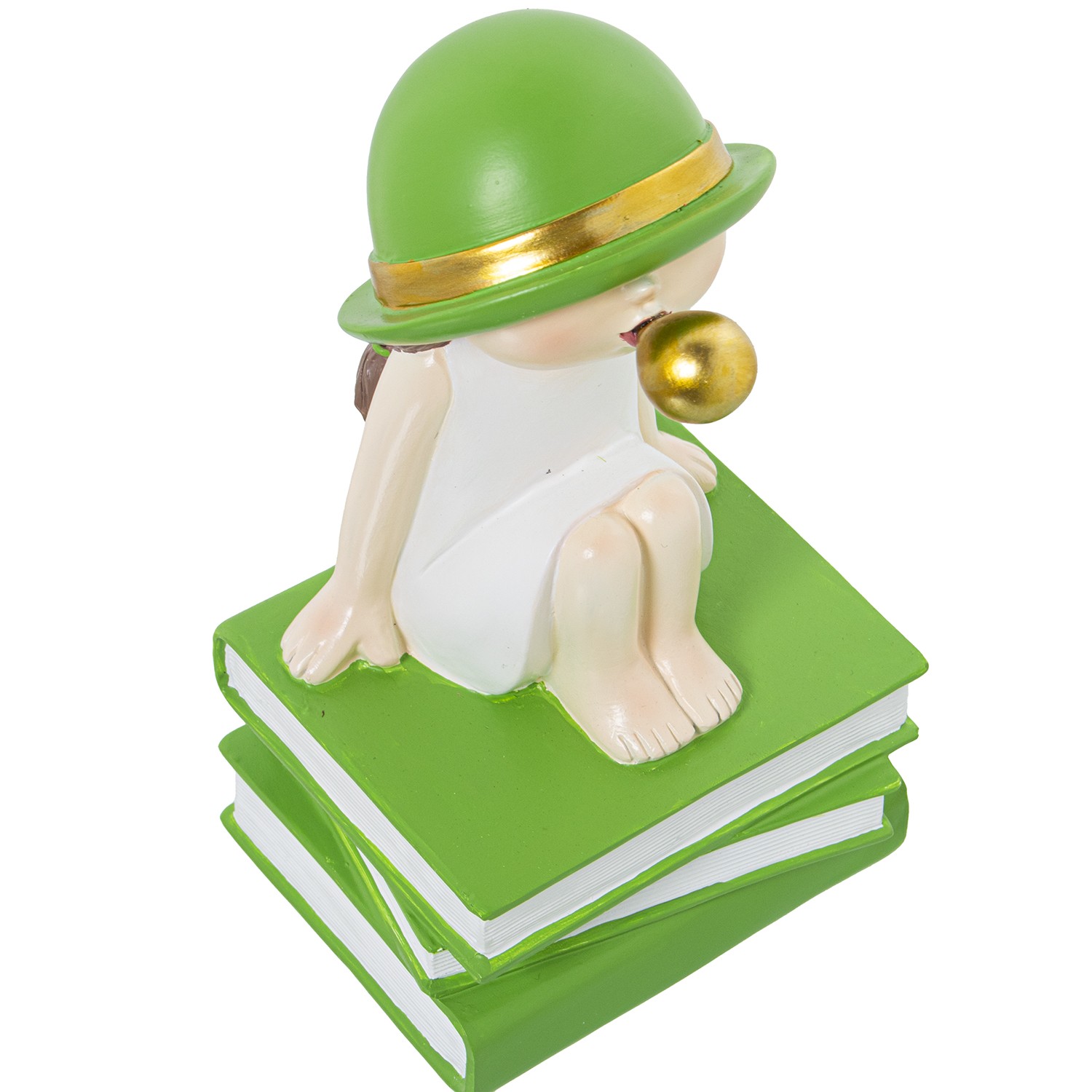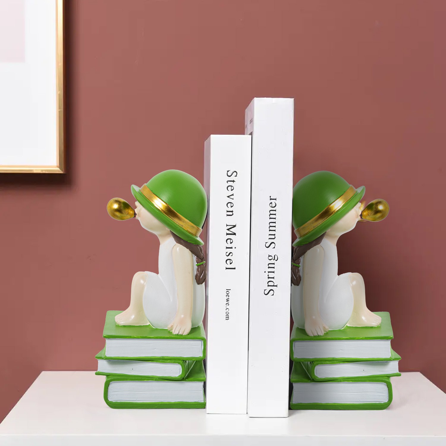 Set 2 White/green Resine Bookends Girl W/chewing Gum_11x9x19cm