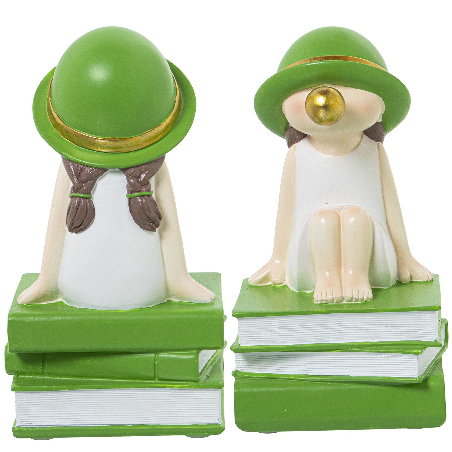 » Set 2 White/green Resine Bookends Girl W/chewing Gum_11x9x19cm