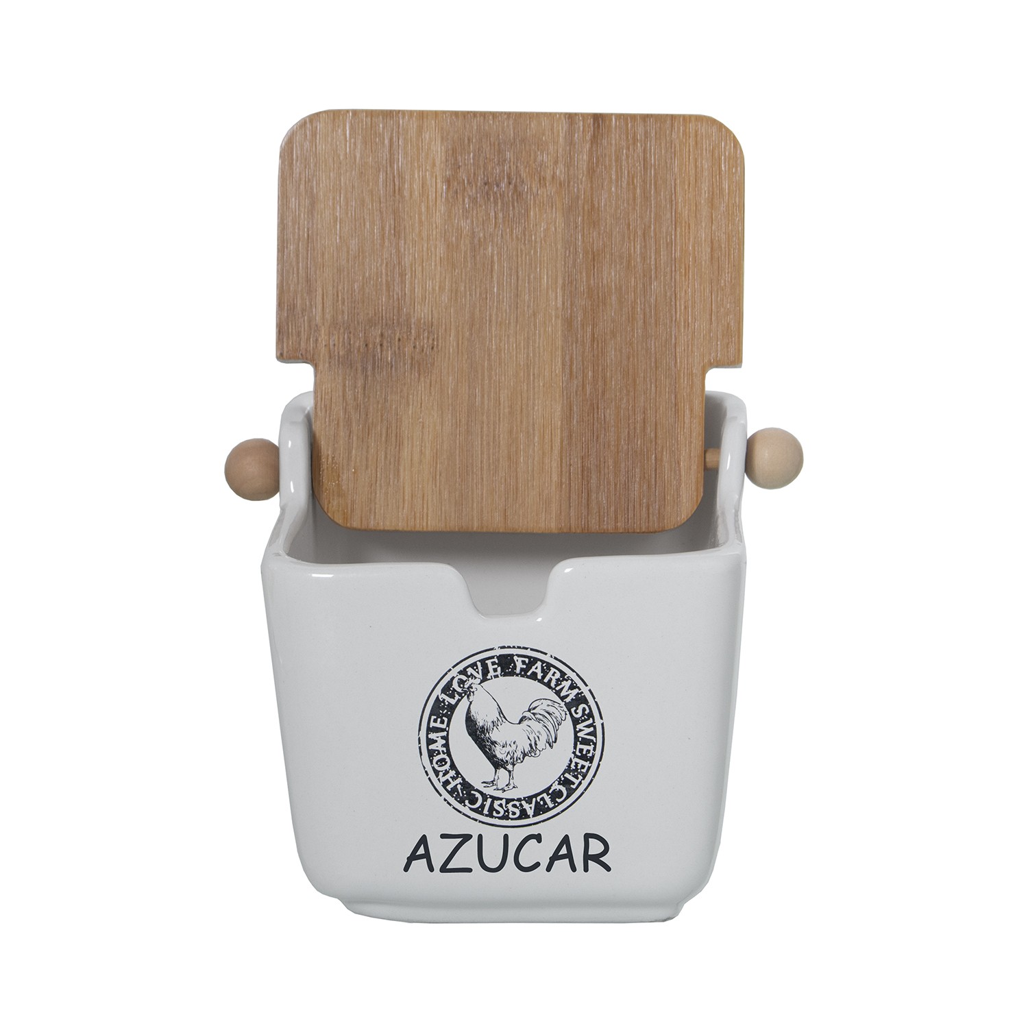 » Azucarero Cerámica C/tapa Madera Deco. Gallo 8,5x8,5x8,5cm