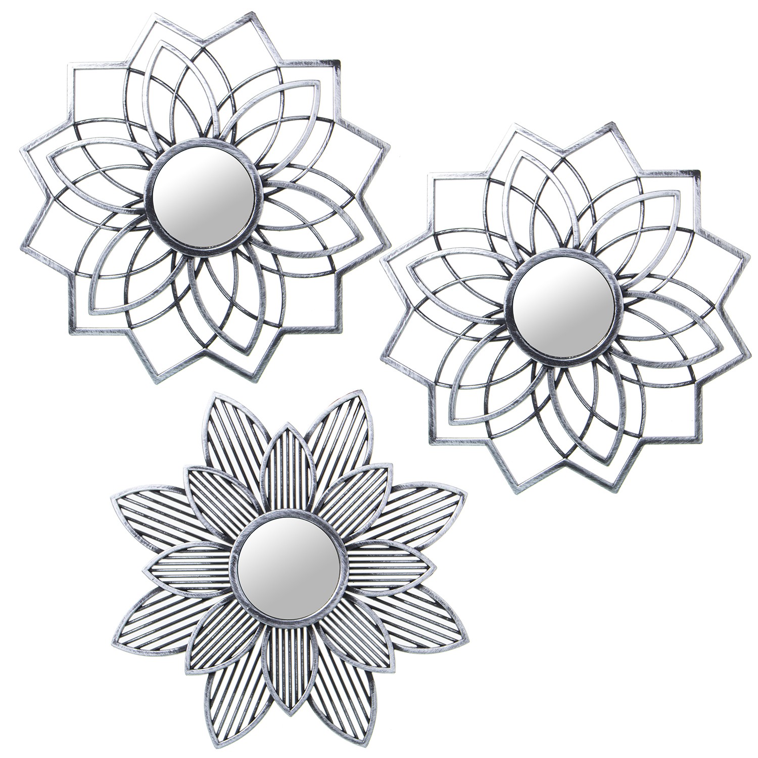 Set 3 Adornos Pared Melamina Plateada C/espejo Ø25cm