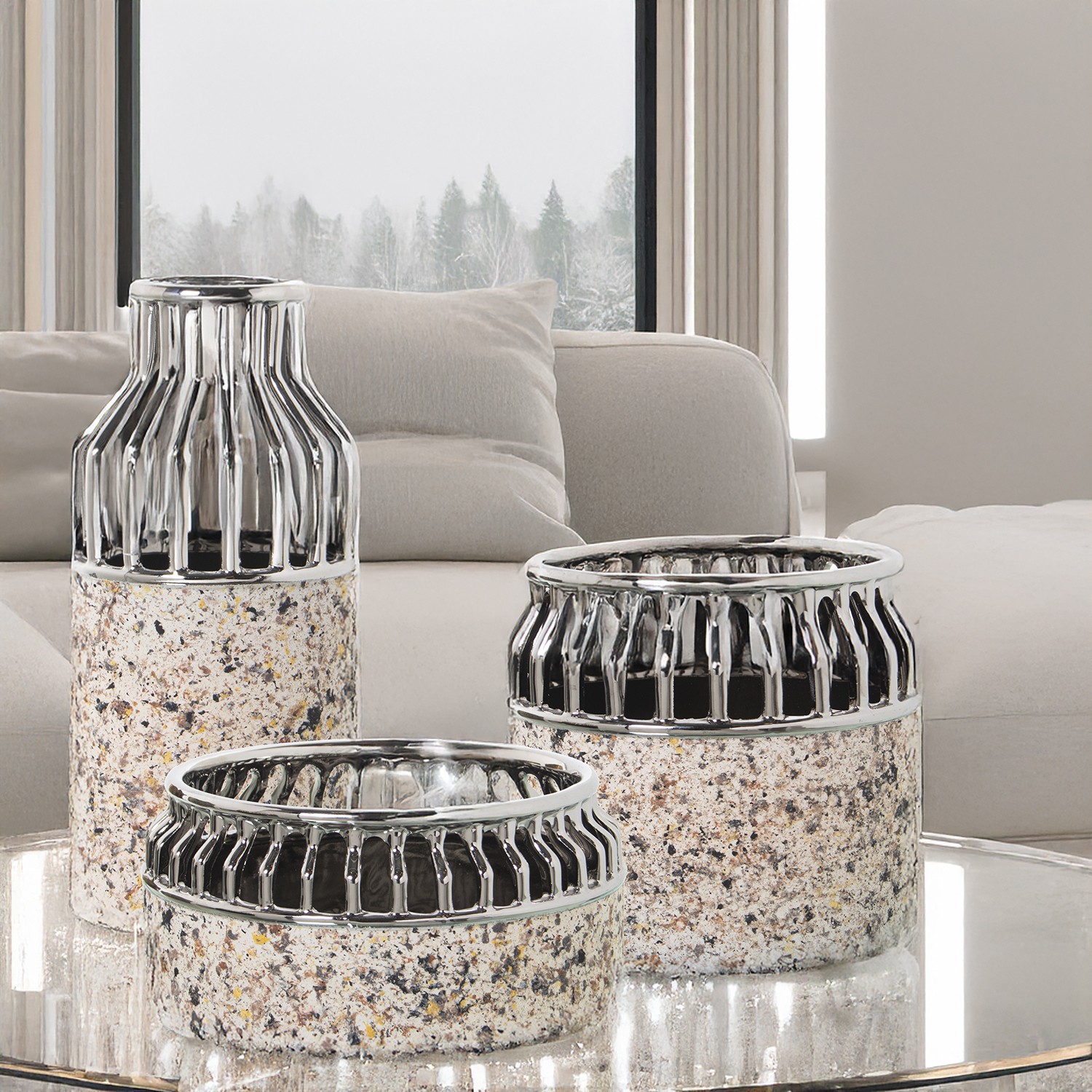 Macetero Cerámica Plata/efecto Granito Ø20x10cm