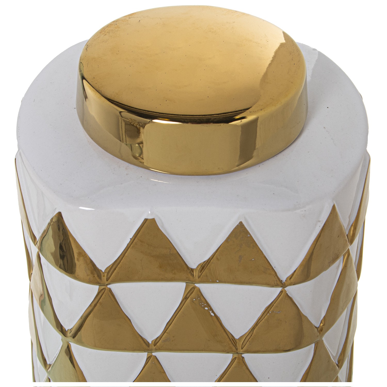 Tibor Cerámica Triángulos Blanco/oro 13x10x28cm
