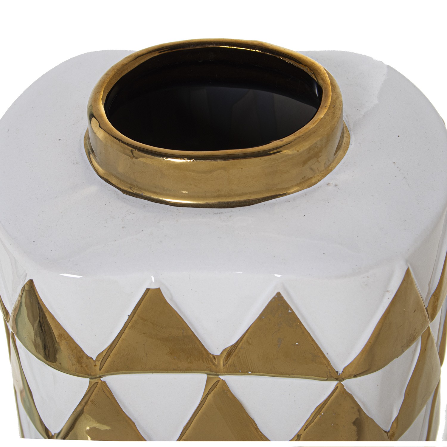 Inicio » Decoracion Ceramica » Tibor Cerámica Triángulos Blanco/oro 13x10x28cm