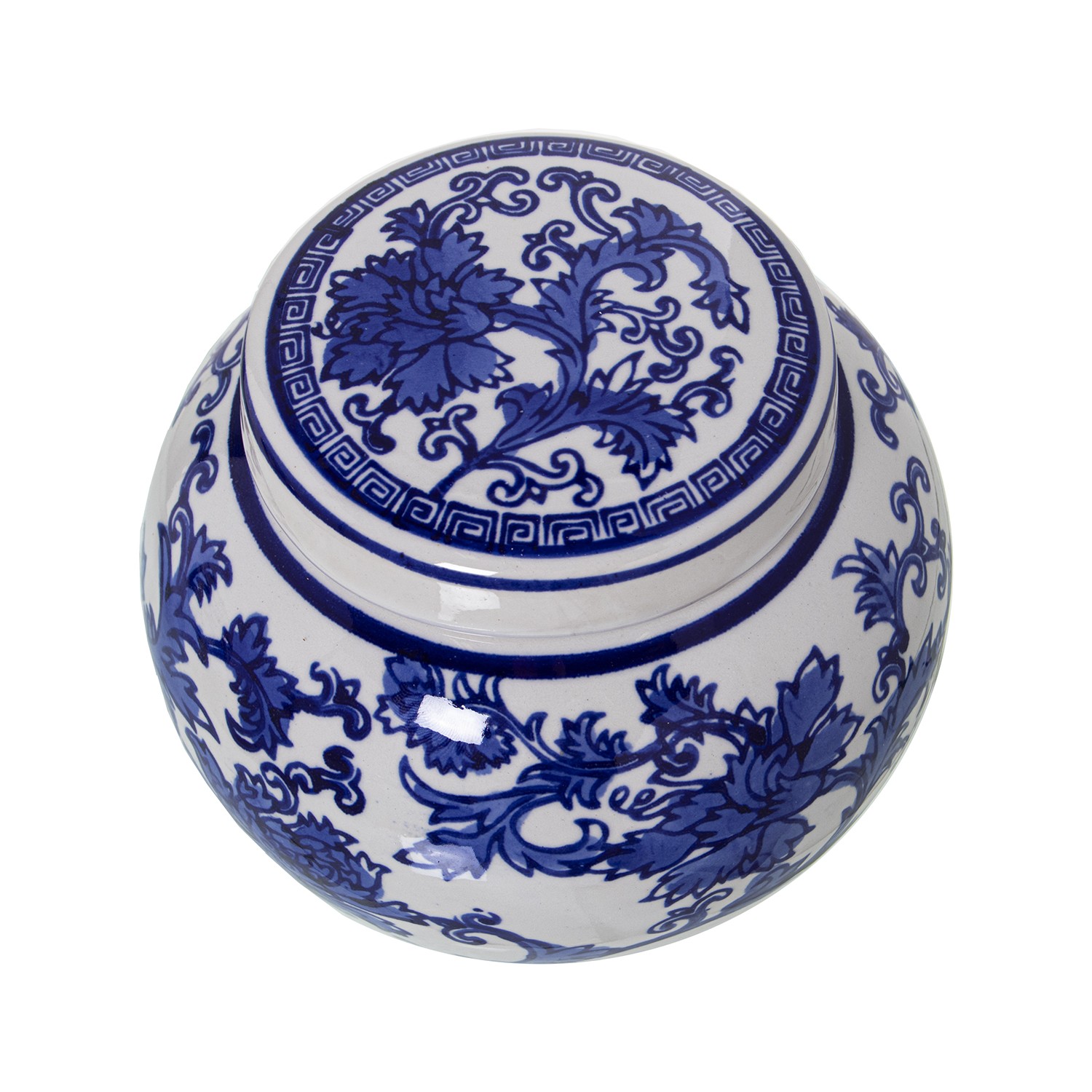 Caja Cerámica Blanco Hojas Azules Ø12x12cm