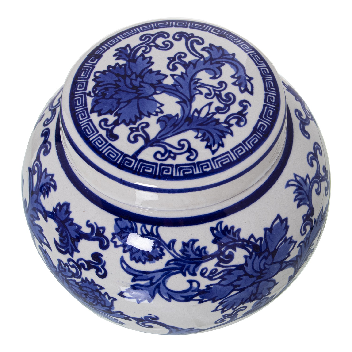 » Caja Cerámica Blanco Hojas Azules Ø12x12cm