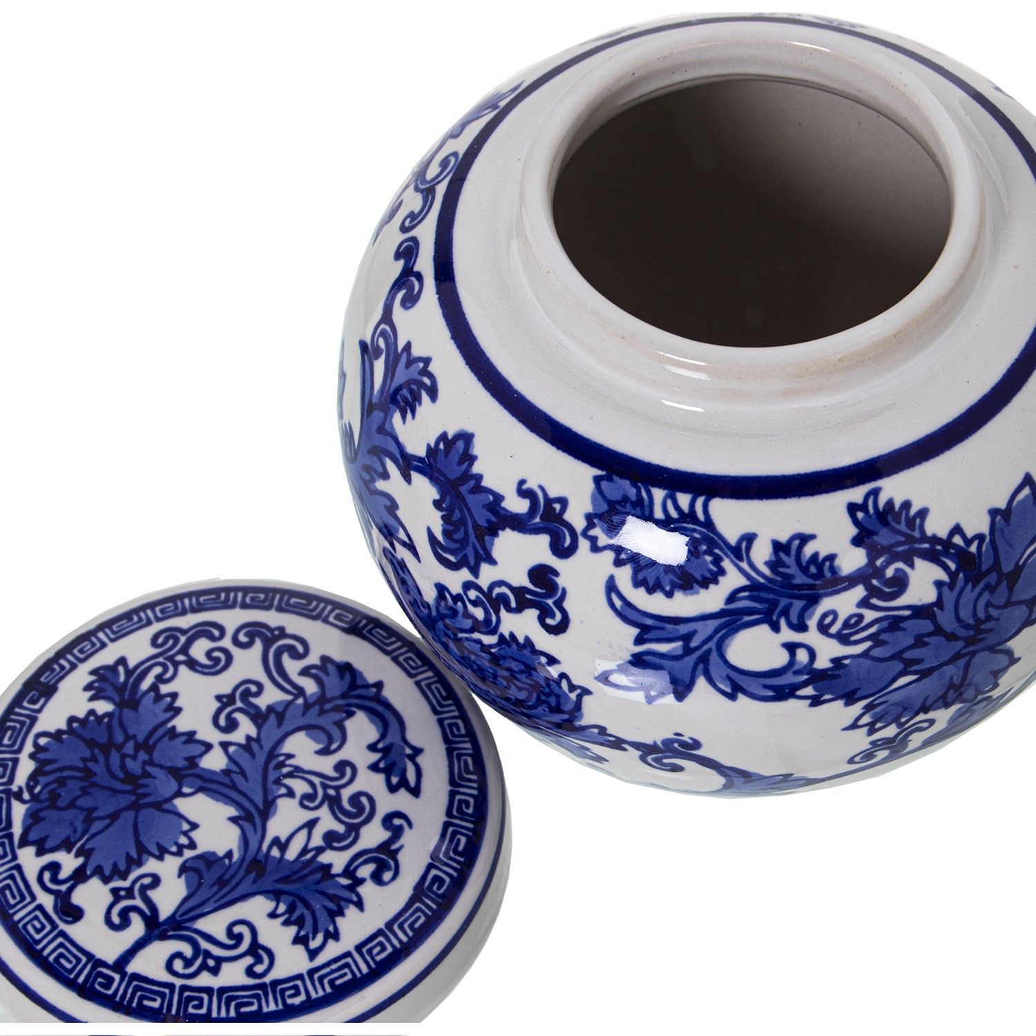 Caja Cerámica Blanco Hojas Azules Ø12x12cm
