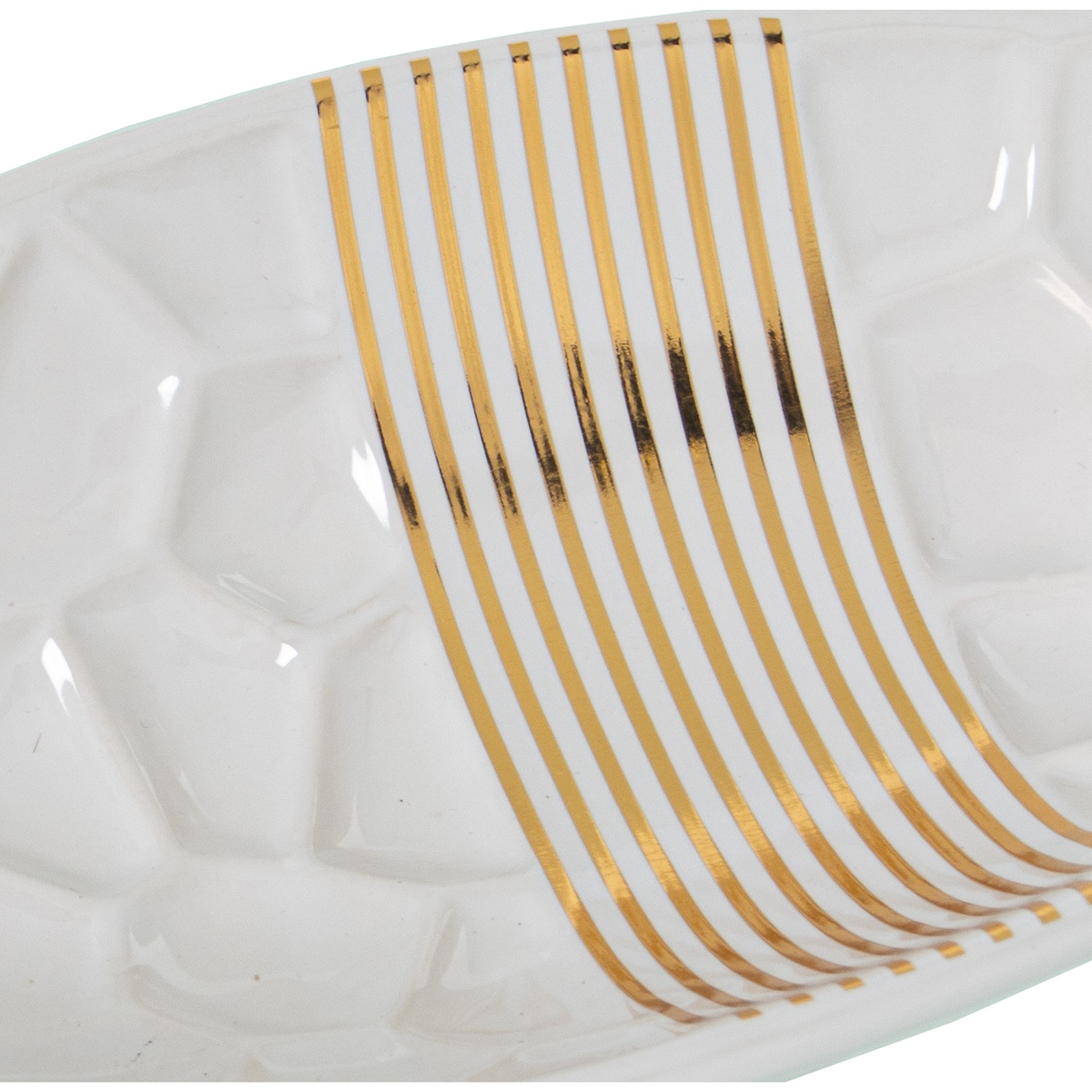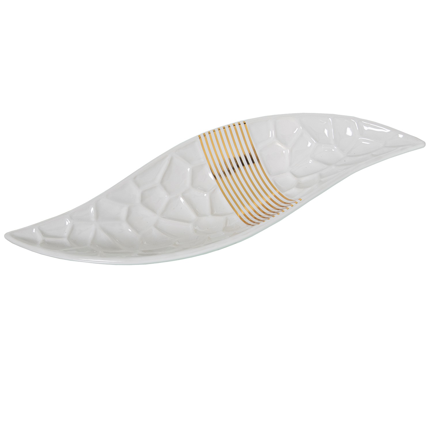 Centro Cerámica Blanco/gris/oro 41x14x6cm