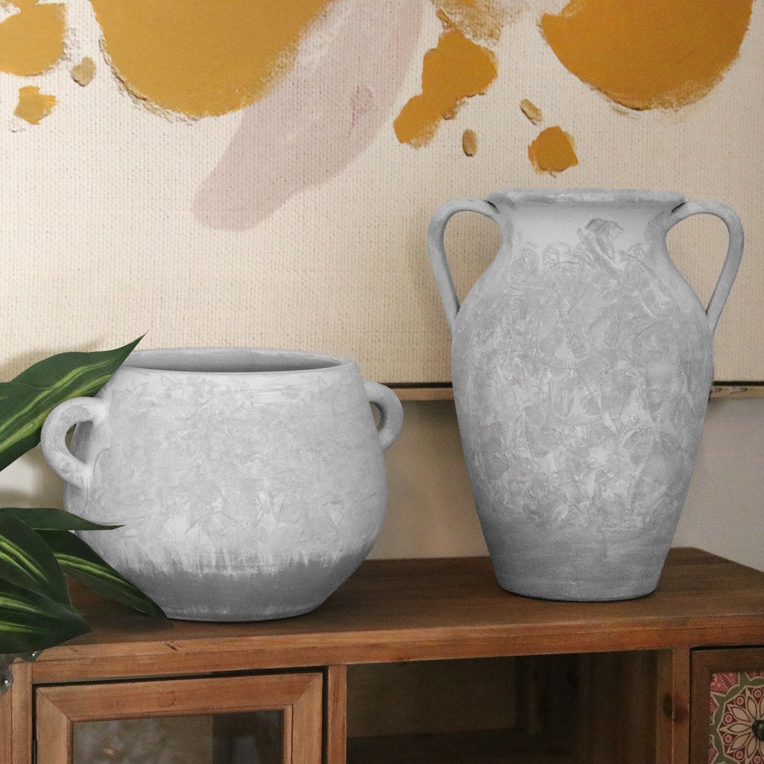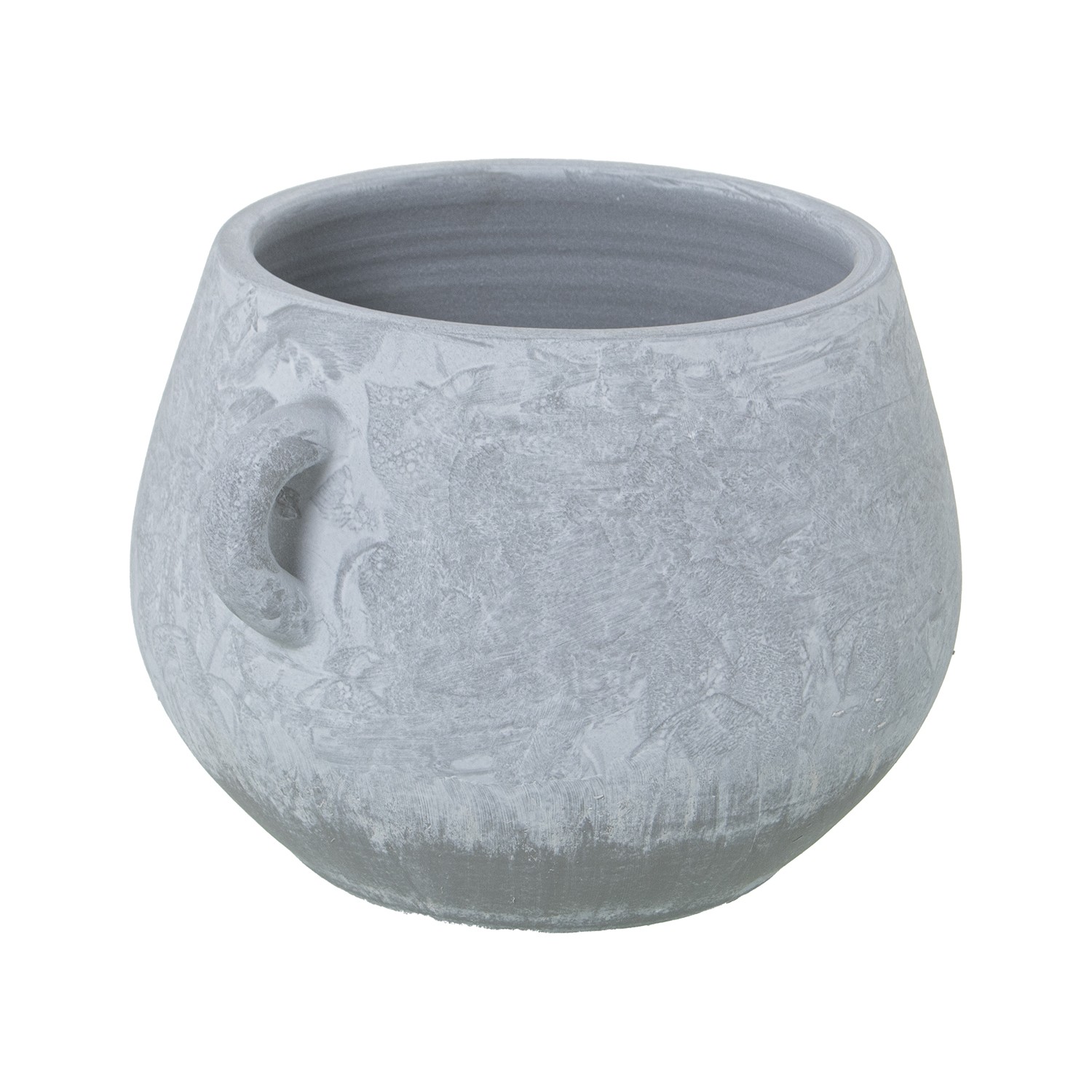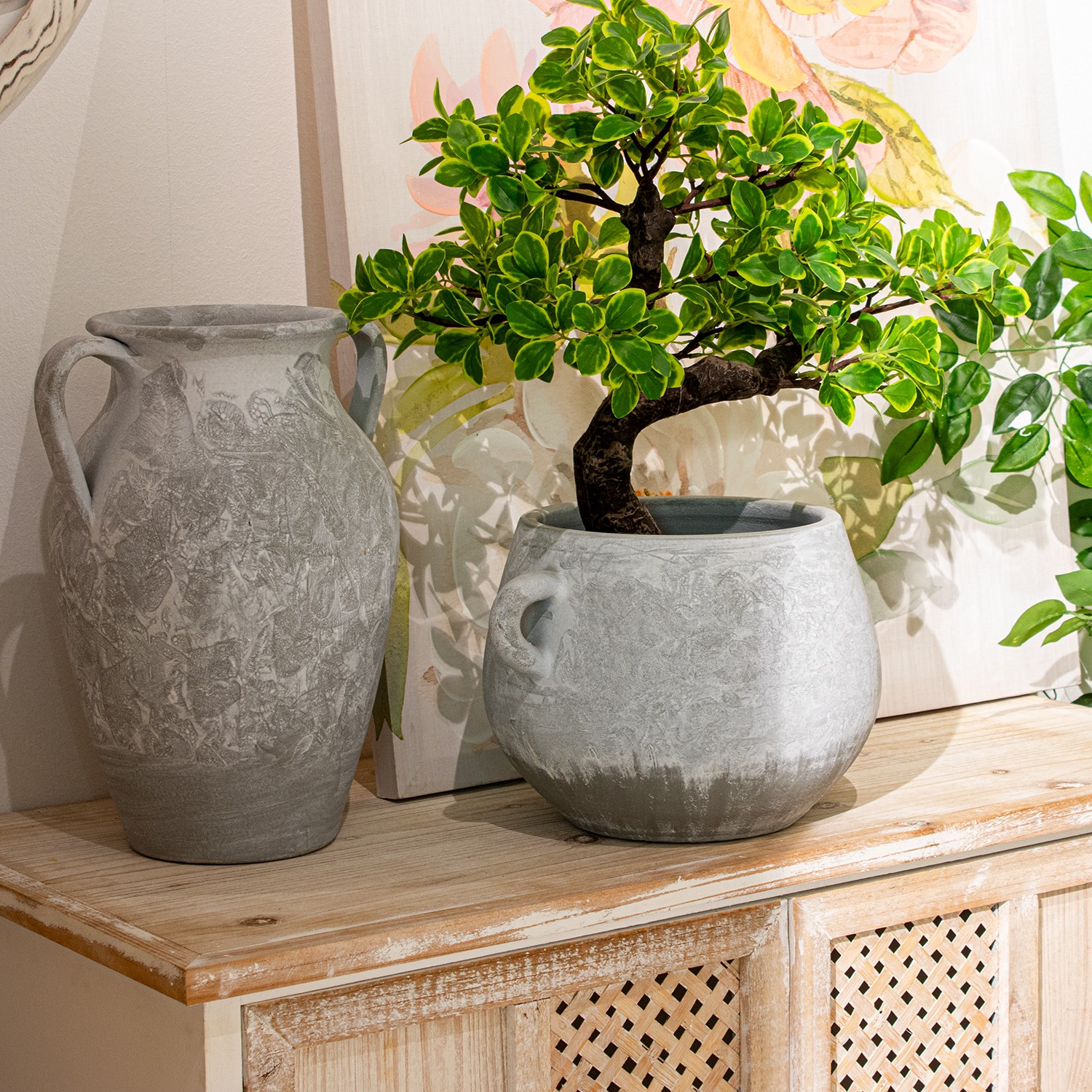Jarrón C/asas Cerámica Gris Esponja 25x30x19cm Boca:ø17,5cm