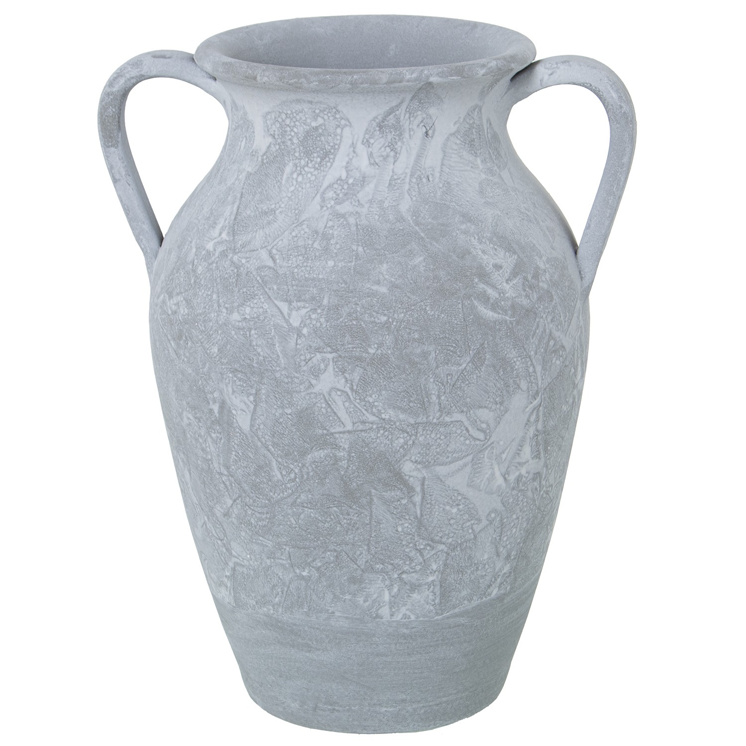 Jarrón C/asas Cerámica Gris Esponja 25x30x19cm Boca:ø17,5cm