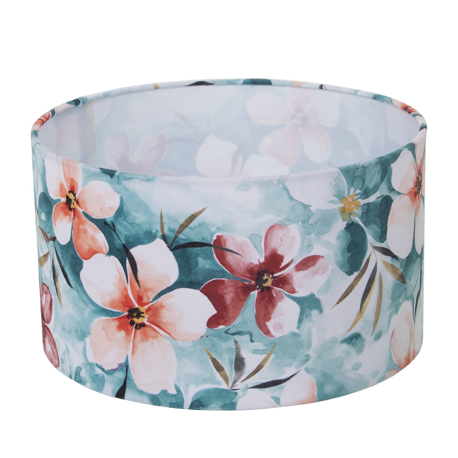 Pantalla Cilíndrica Estampadaterciopelo Flores Ø40x25cm, Para Bombilla E-27