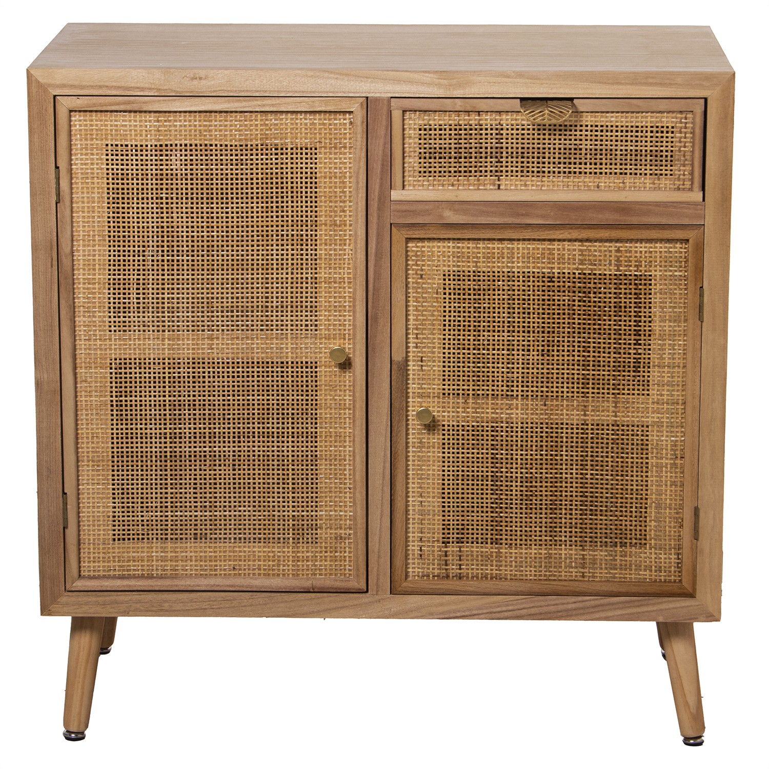 Mesa Entrada C/2 Puertas+ Cajón Ratán Natural, Pino+dm 80x40x81cm, Alt. Patas:16cm