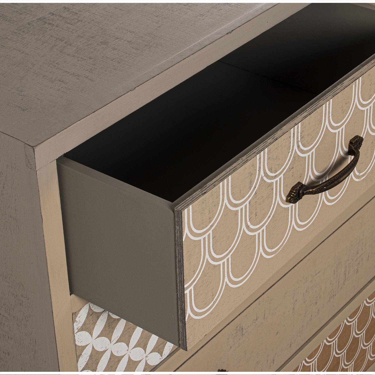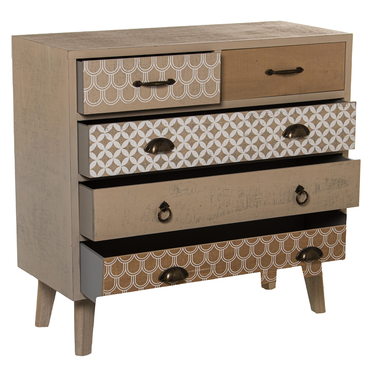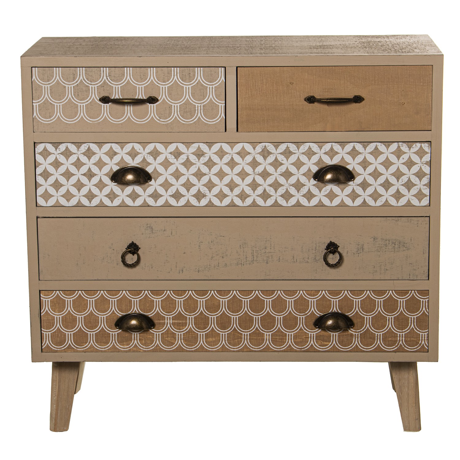 Cómoda Madera C/5 Cajones, Abeto+contrach. +patas De Pino 80x35x76cm