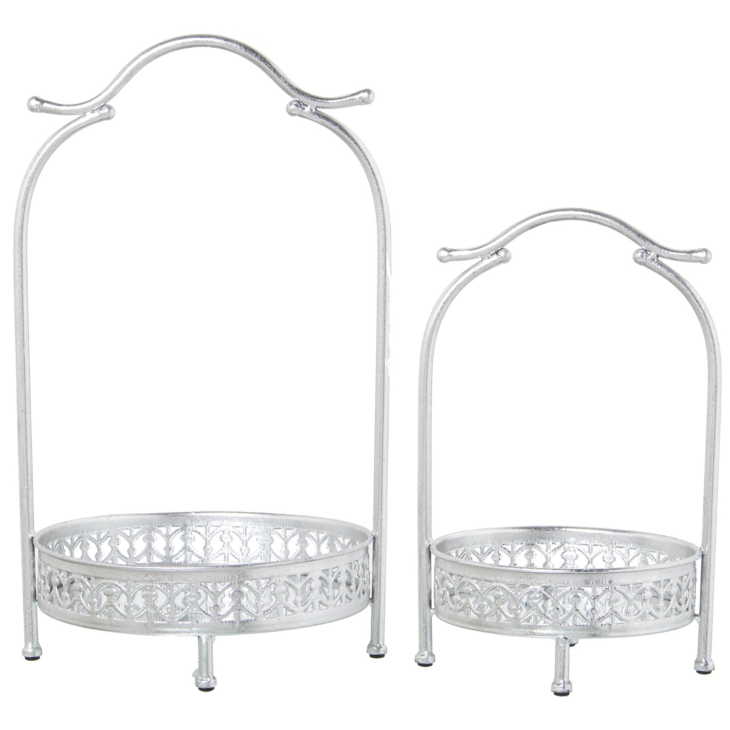 Set 2 Bandejas Metal C/asa Dorado/espejo 28x26x48cm+22x21x34cm