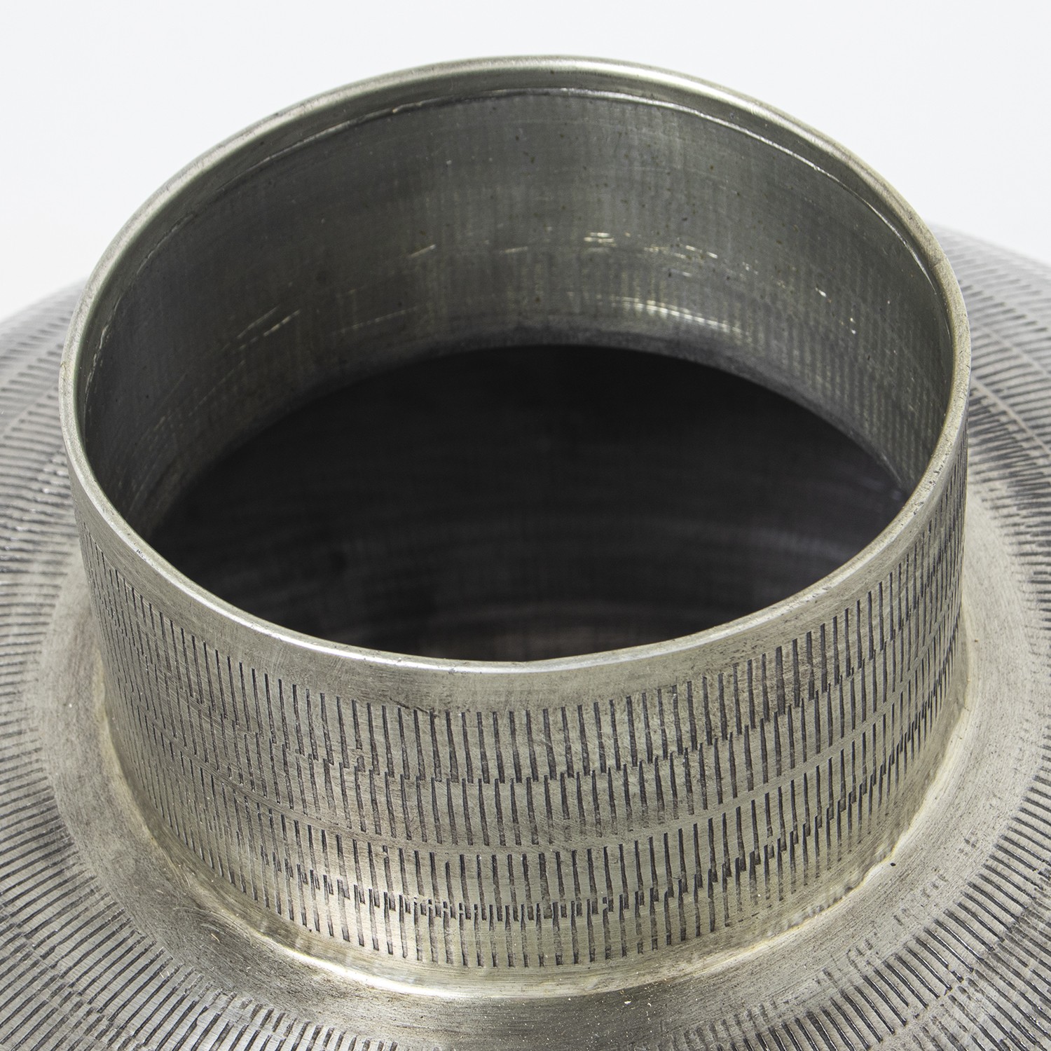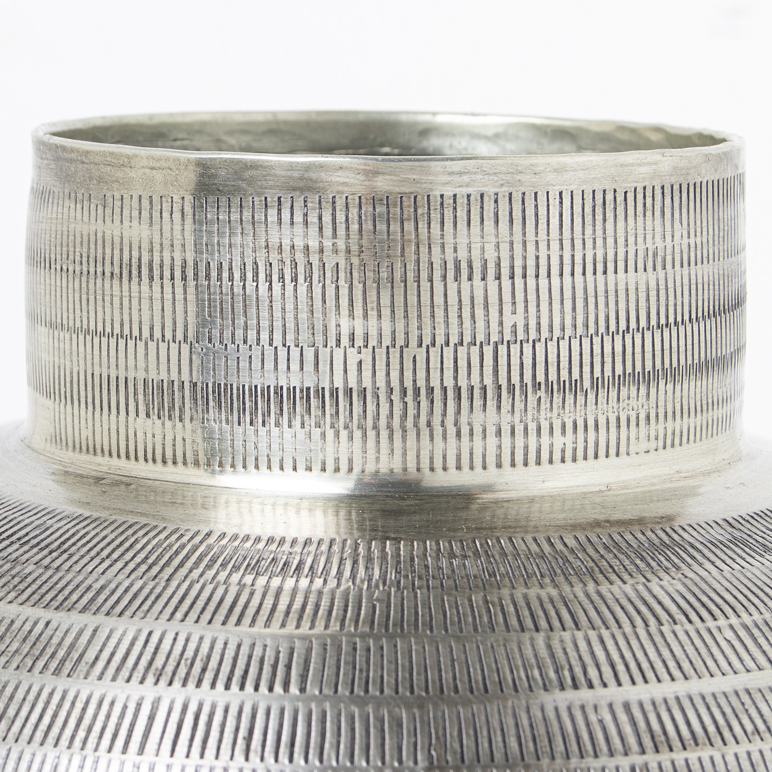 Jarrón Aluminio Tallado Plata Envejecida Ø26x26cm