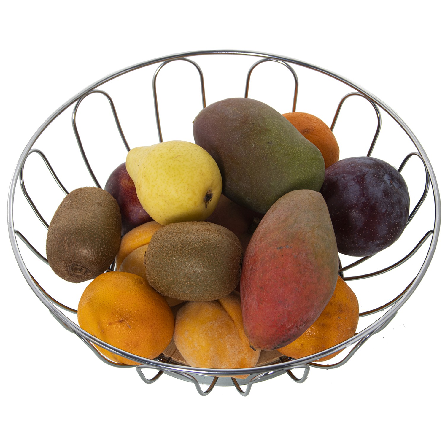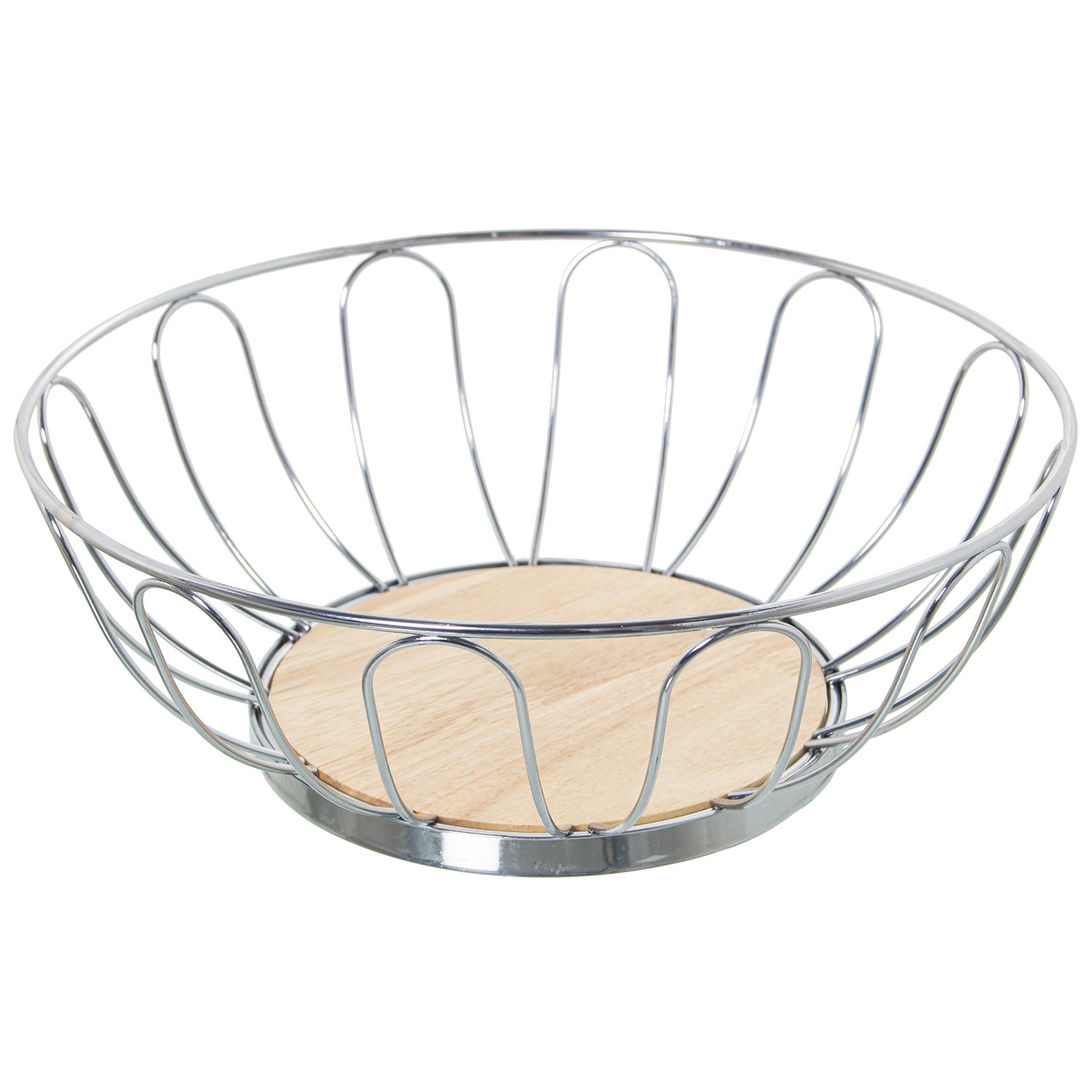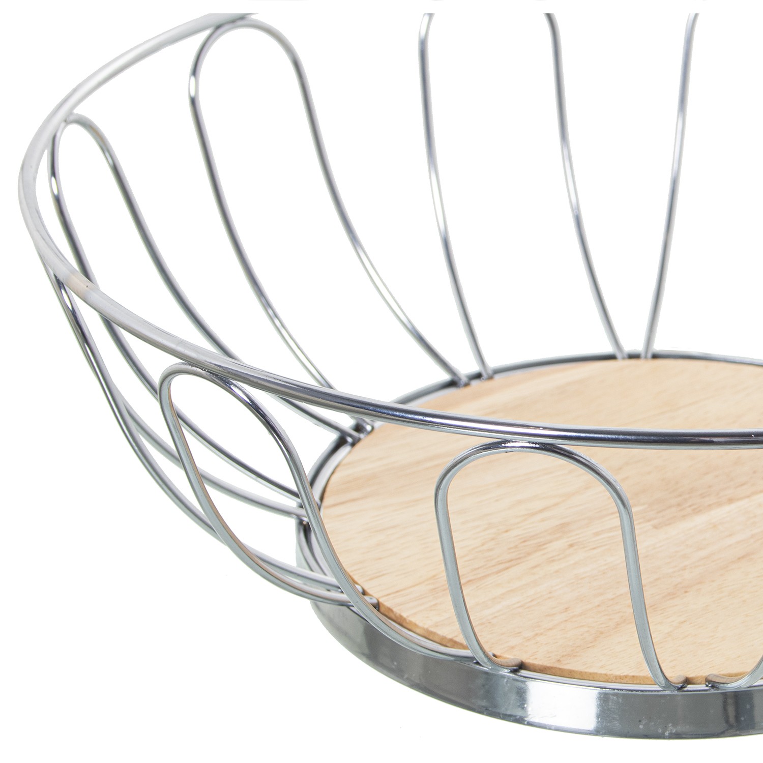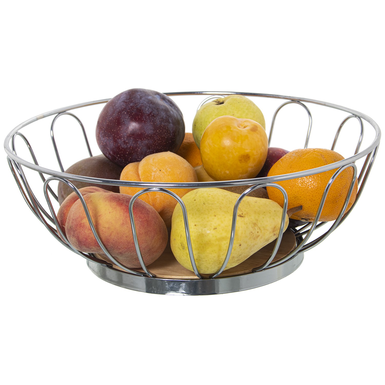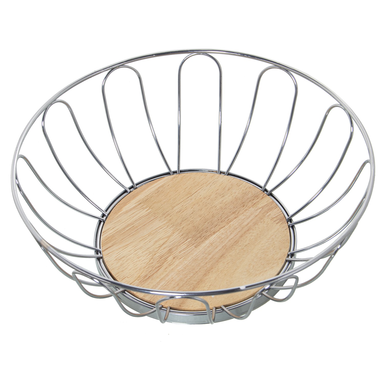 » Frutero Metal Cromado C/base Madera Ø28x10cm, Base:ø16,5cm