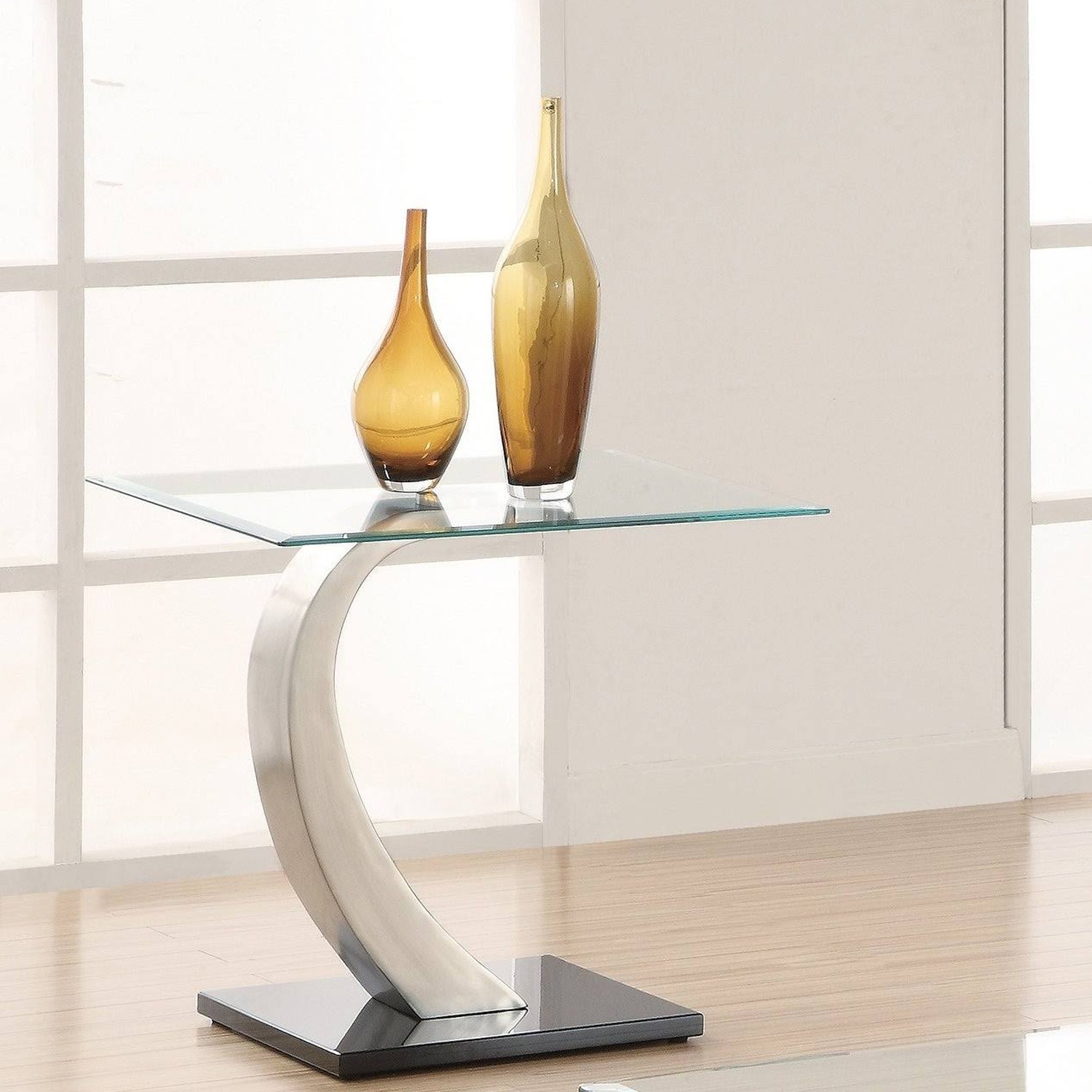Mesa Auxiliar Cristal/acer0+91154+91155 (base: Acero+dm) 60x60x55cm, Cristal Temp.8mm