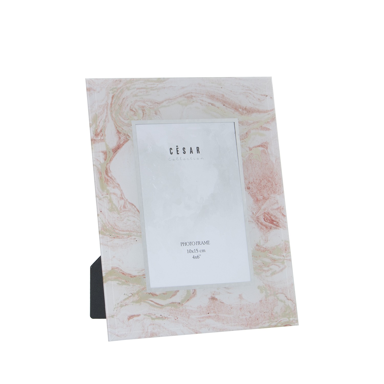 Cadre Photo En Verre Décoré De Marbre Doré - 10x15cm- Ext:13x18cm