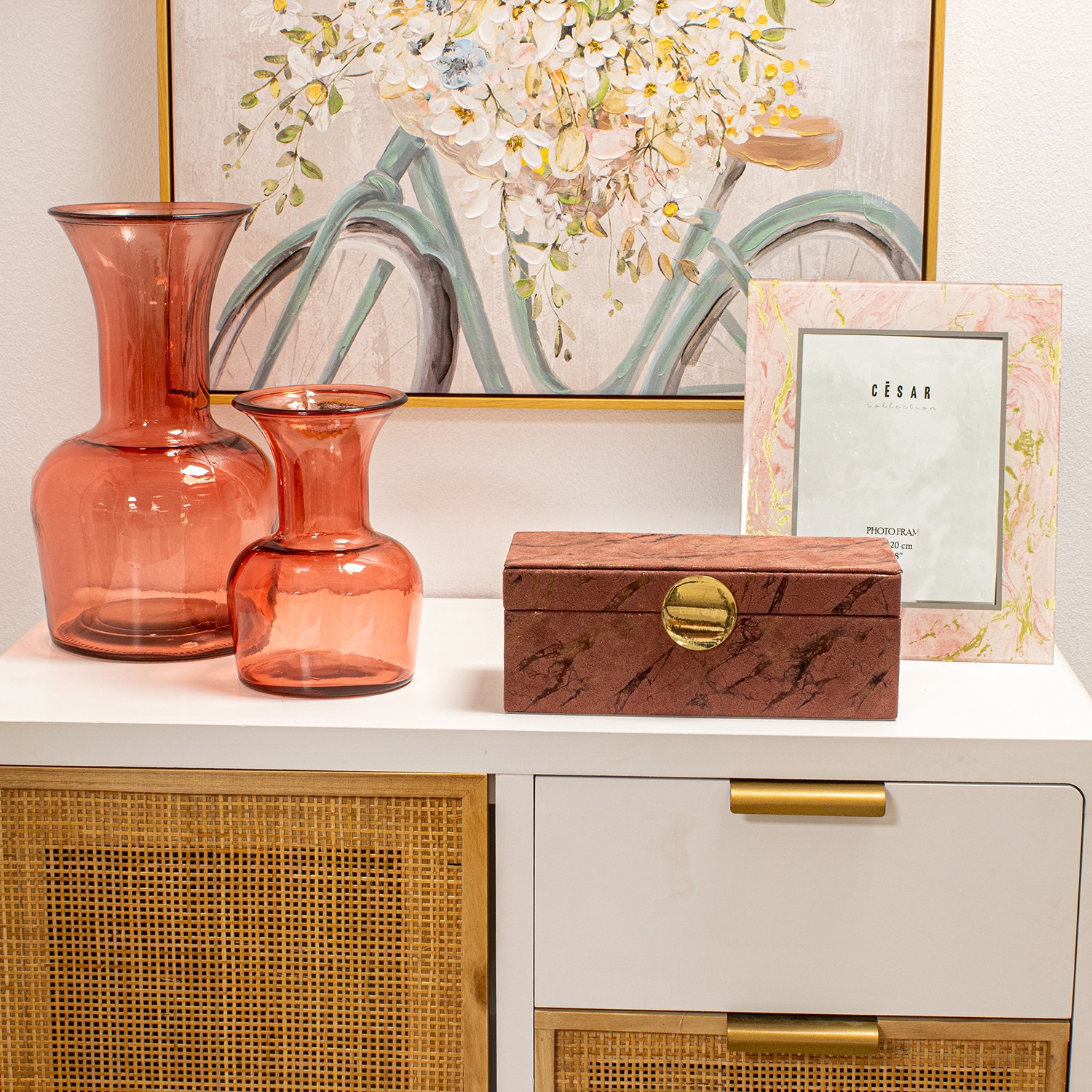 Cadre Photo En Verre Décoré De Marbre Doré - 20x25cm- Ext:28x33cm