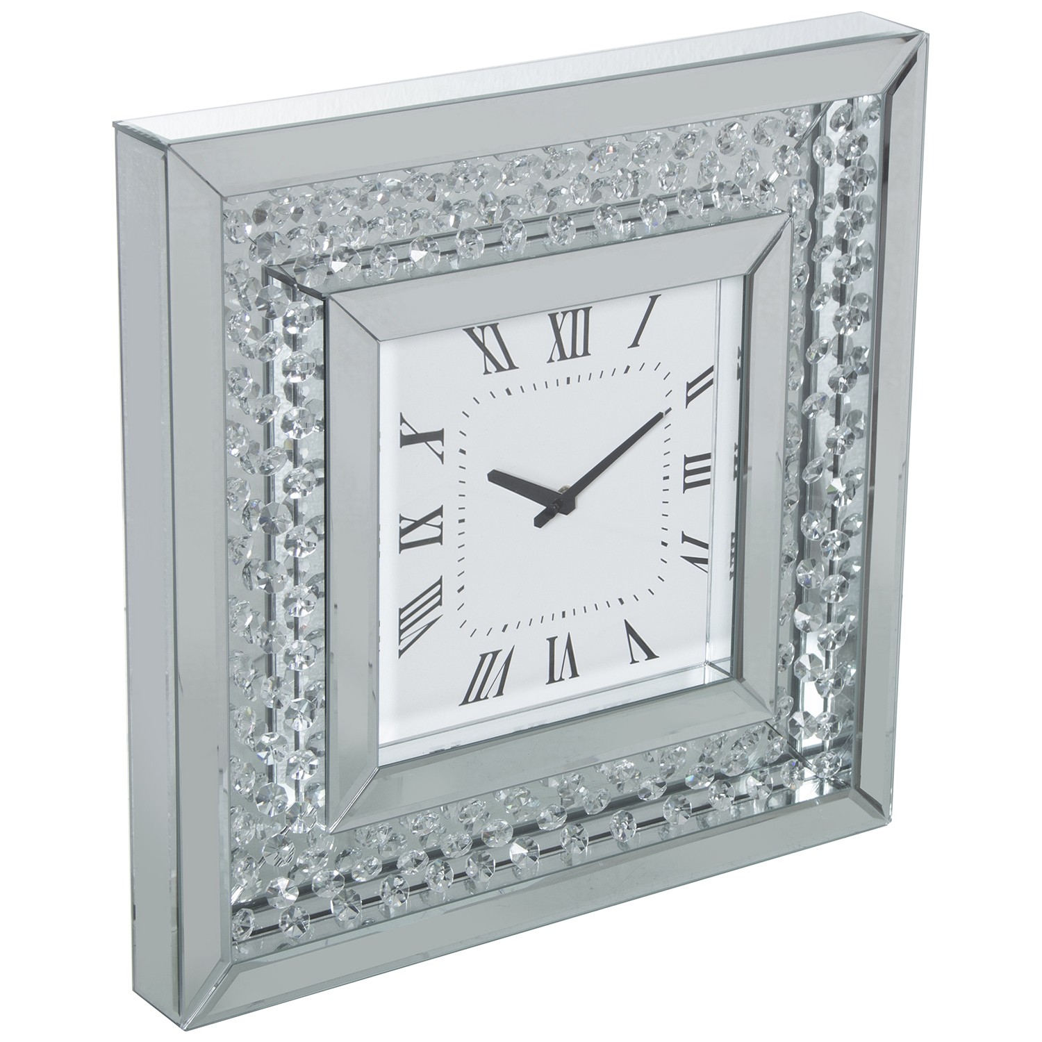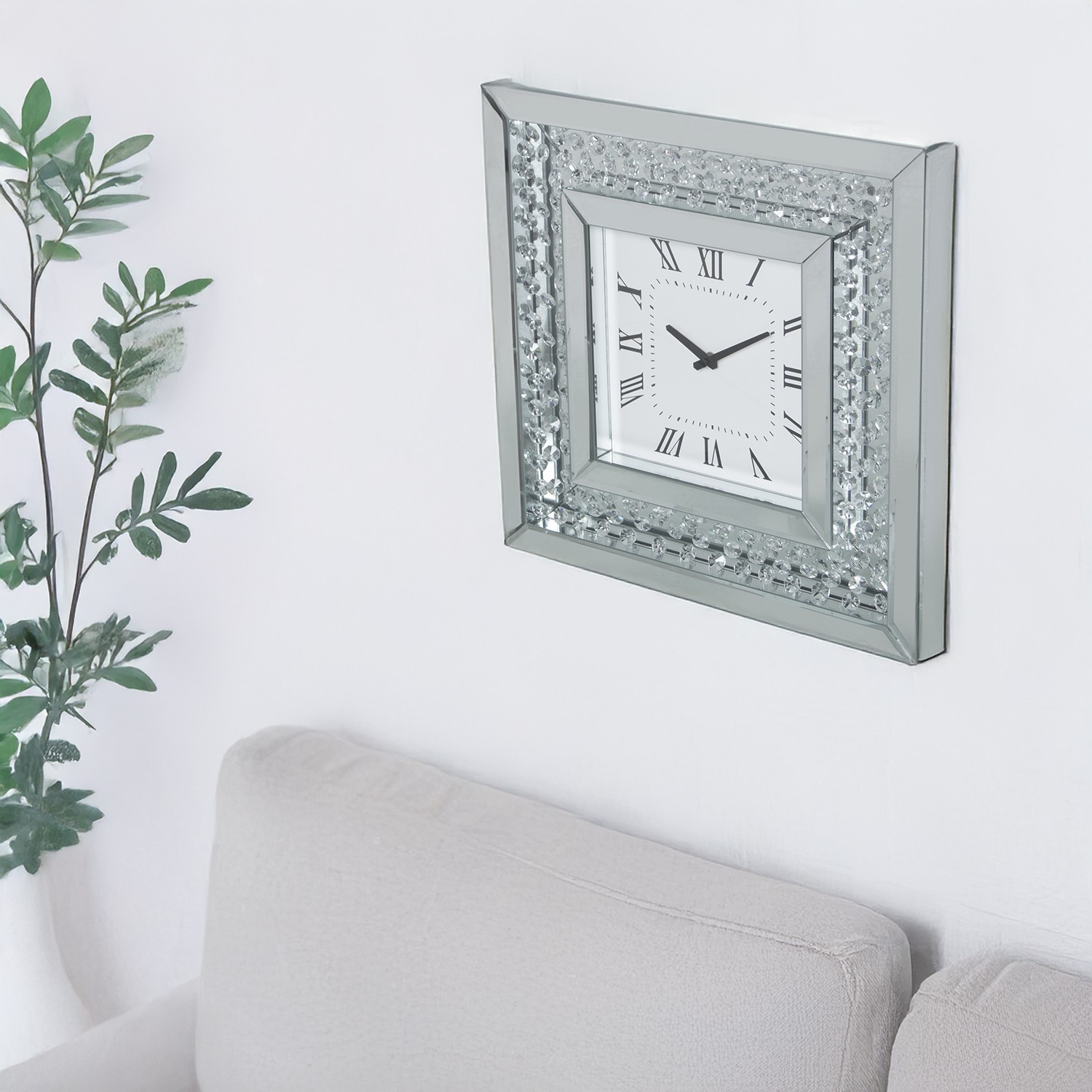Horloge Murale Miroir Avec Faux Diamants - 40x40cm- 40x4,5x40cm, Pila:1xaa No Inc