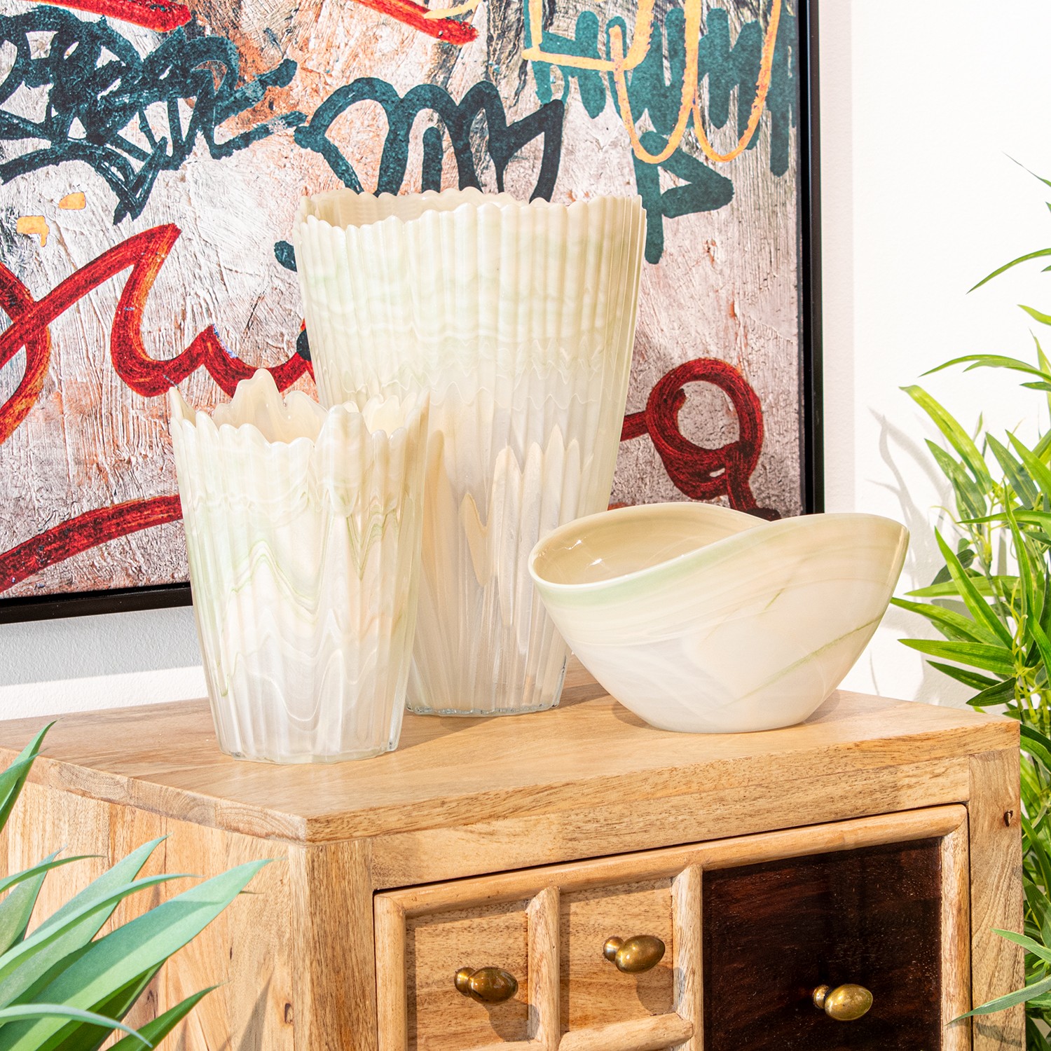 Vase En Verre Crème Ø14x20cm Base:ø9cm
