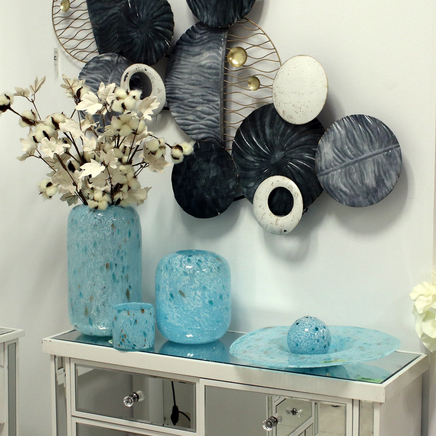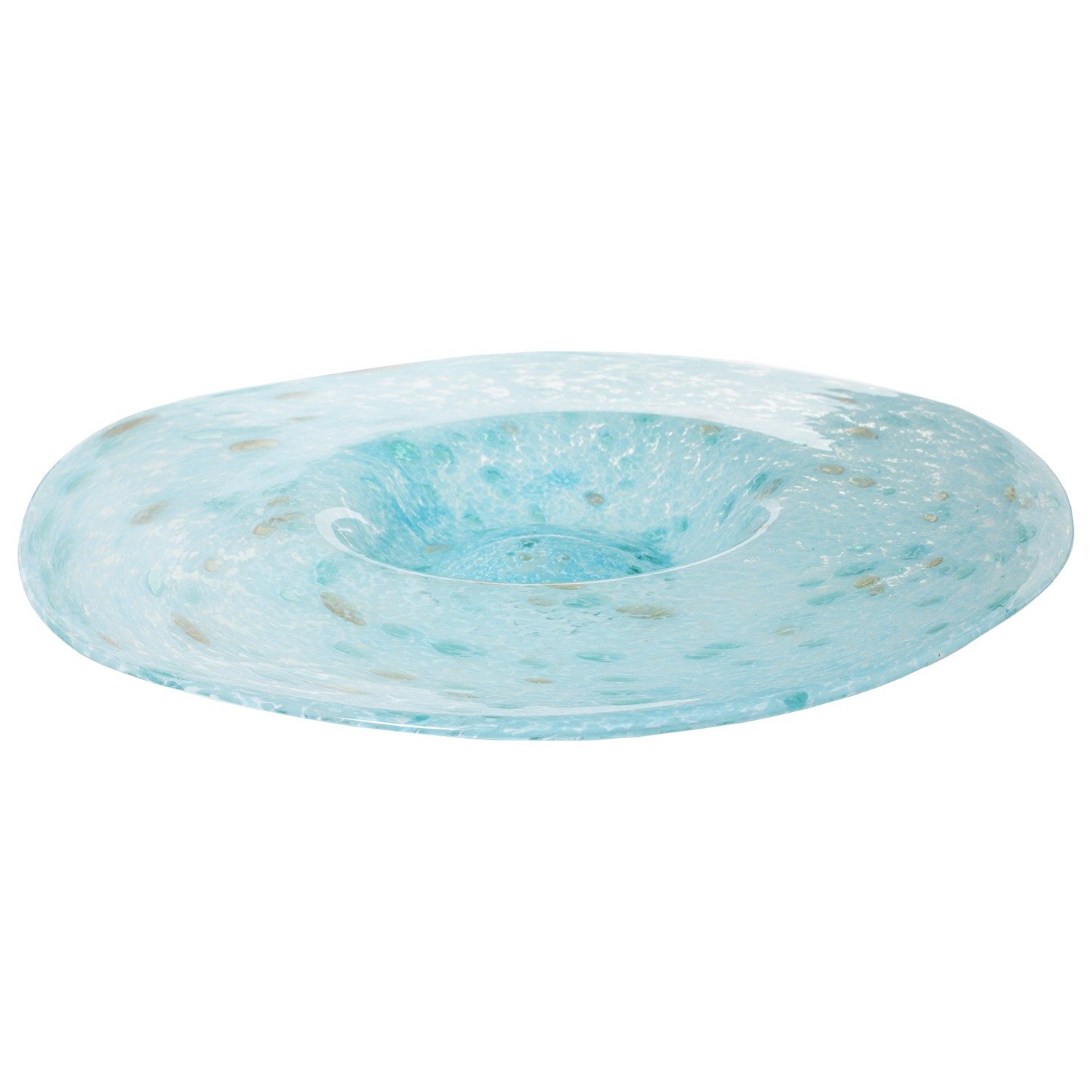 » Centre De Table En Verre Bleu Clair Marbré- Ø40x7cm