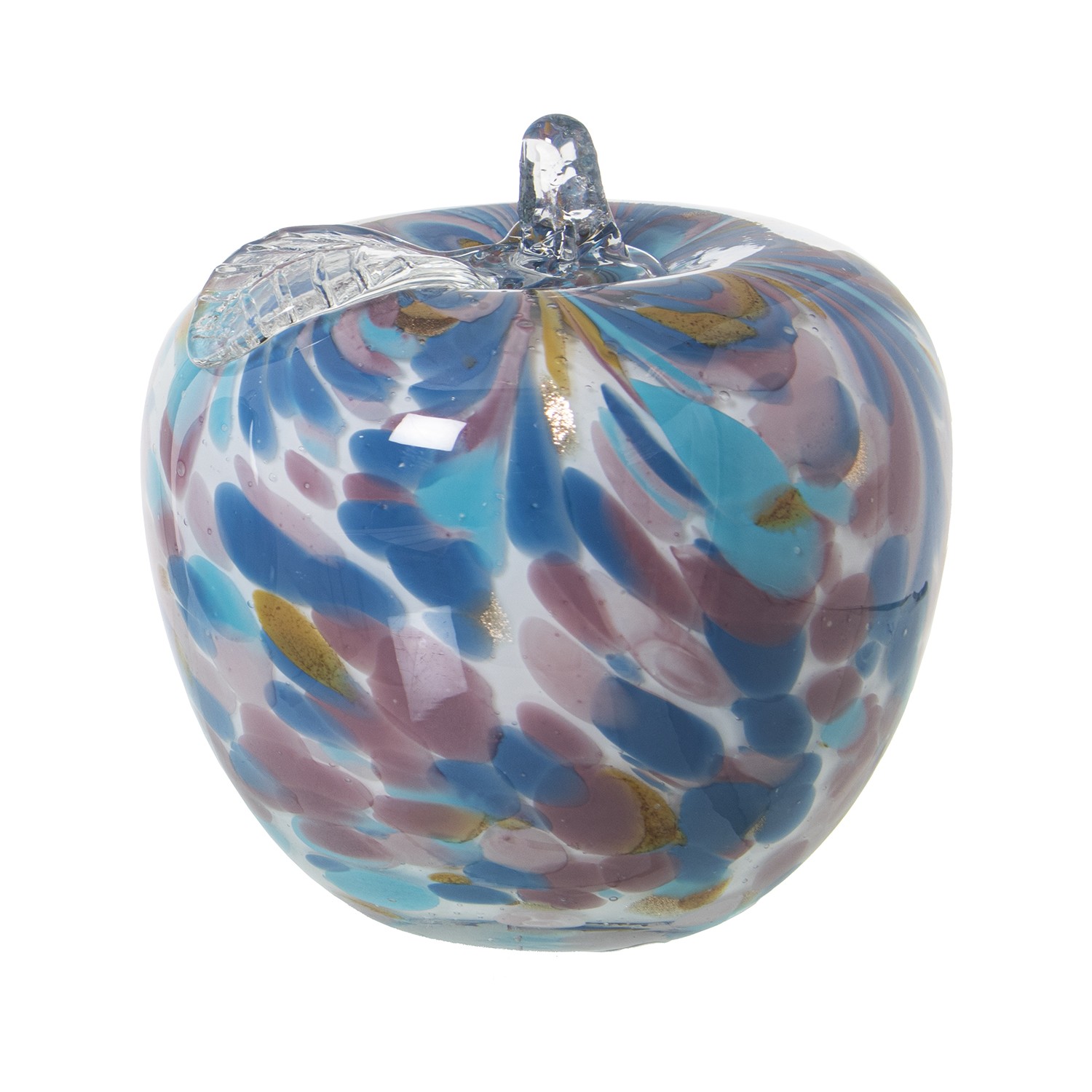 » Pomme En Verre Blanc Et Bleu- Ø13x13cm