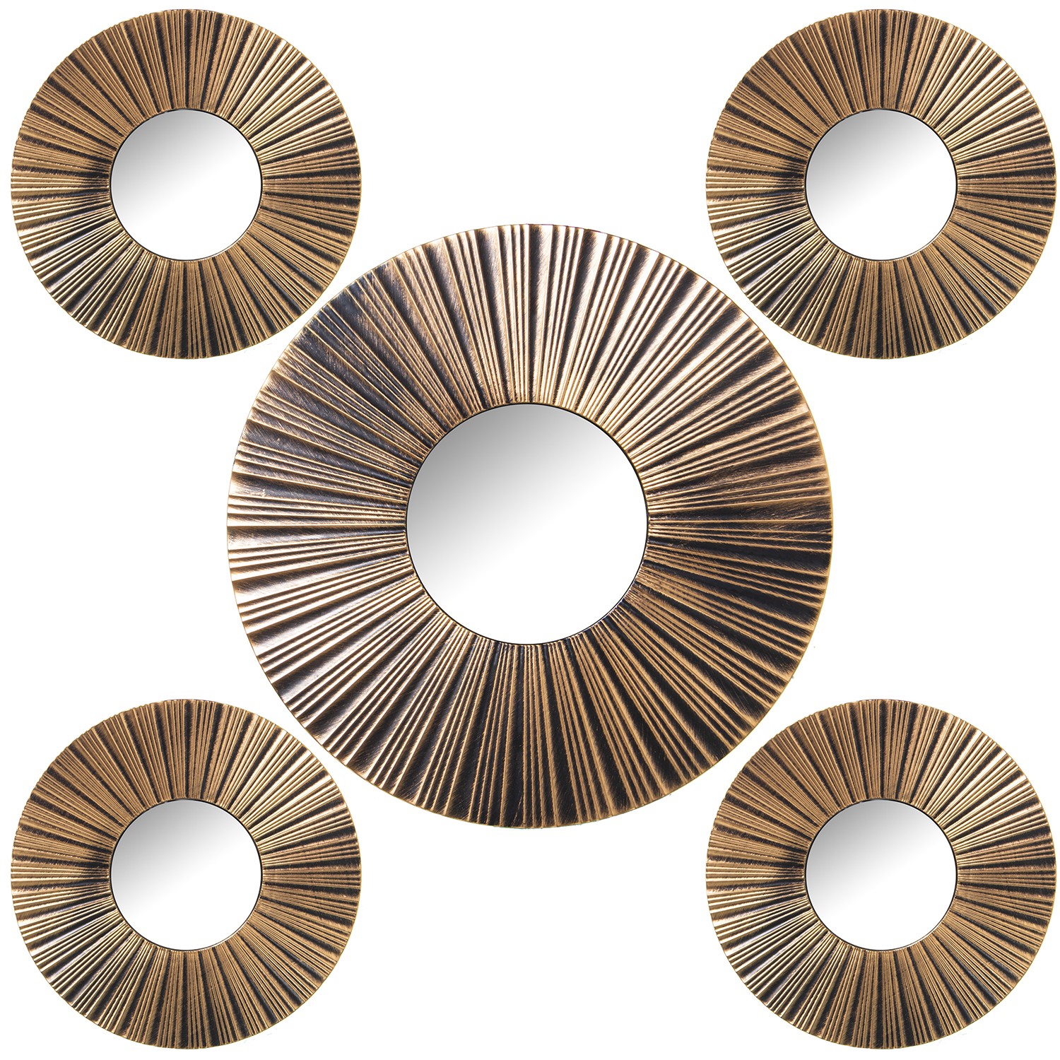 Set De 5 Décorations Murales En Mélamine Et Miroir - Doré- 1xø50cm+4xø25cm
