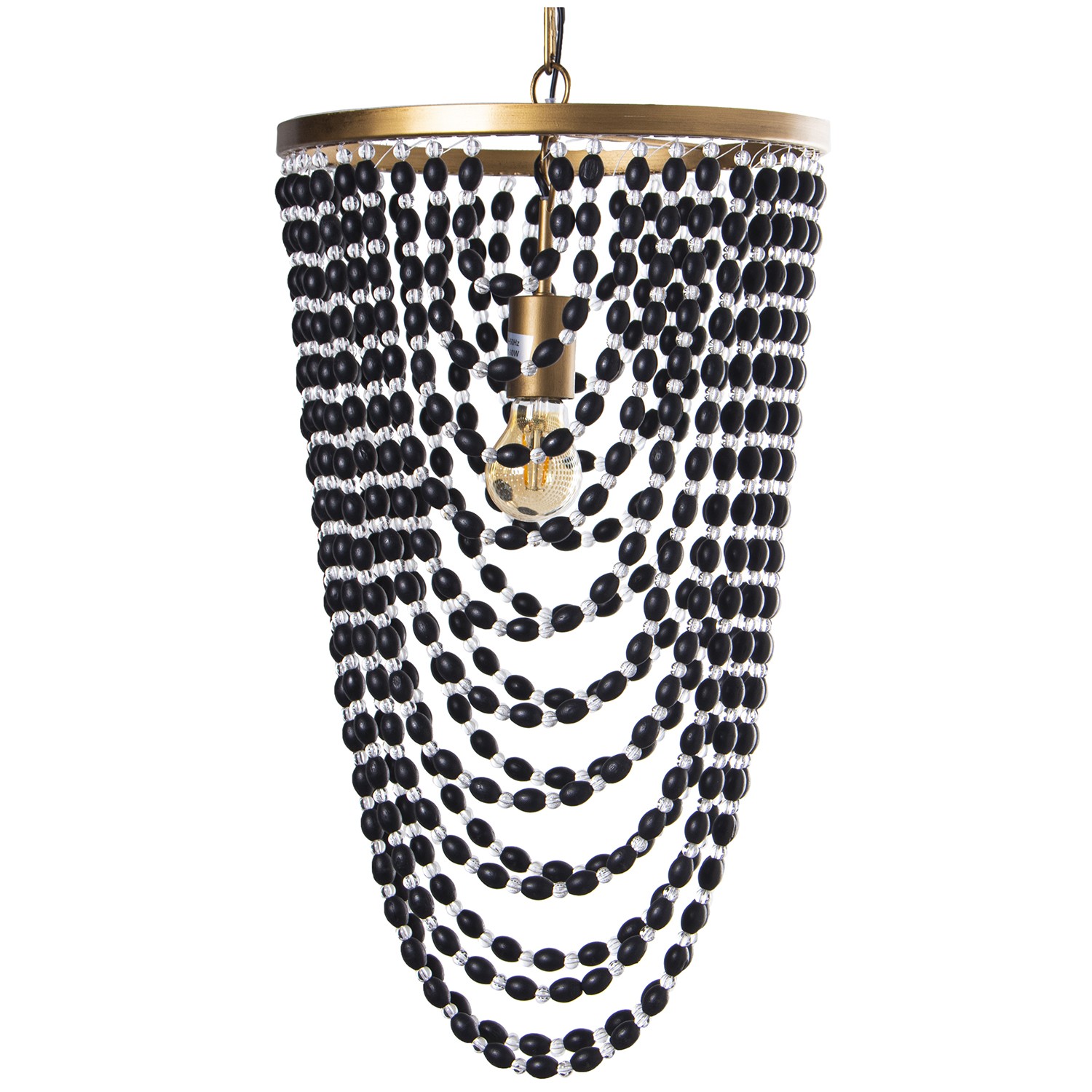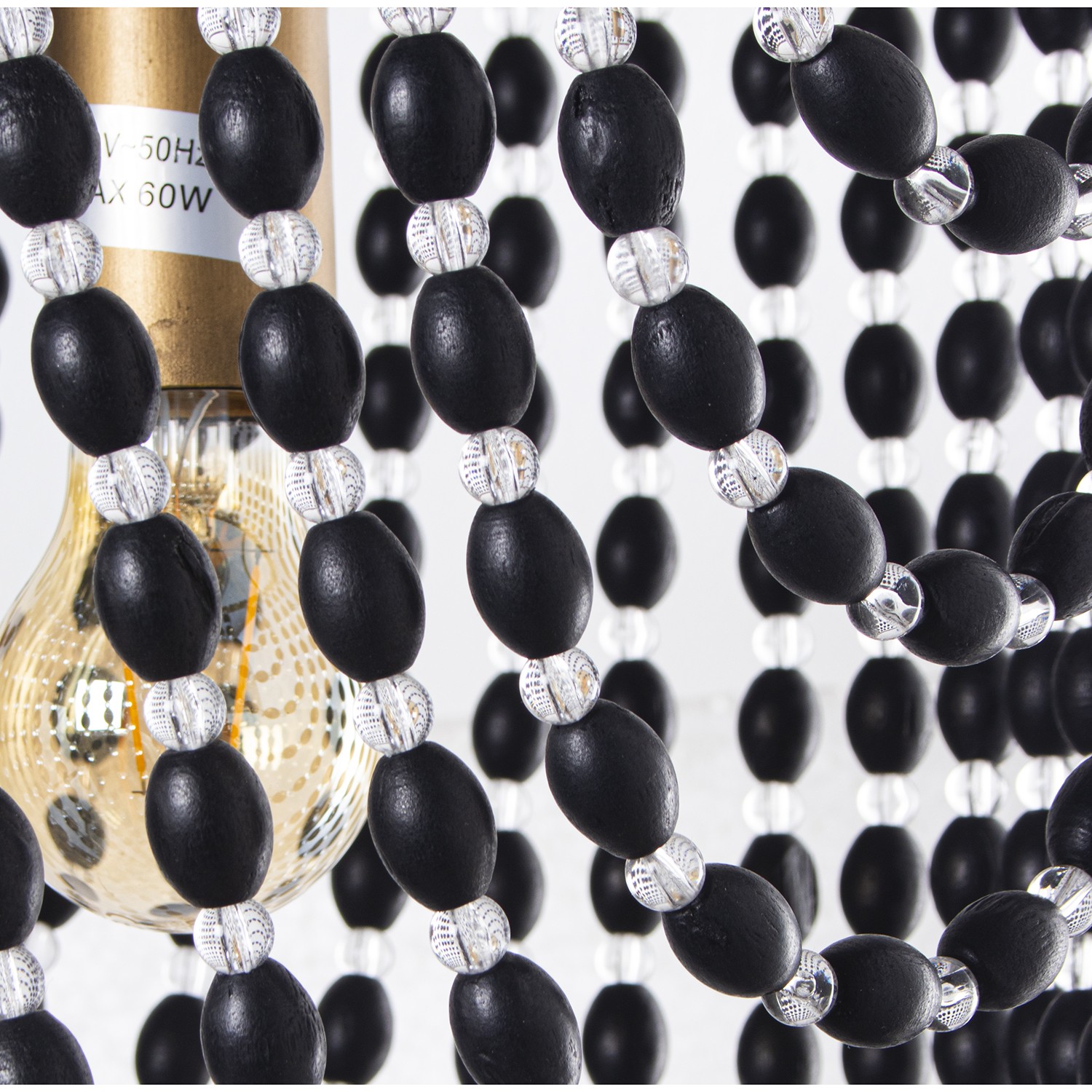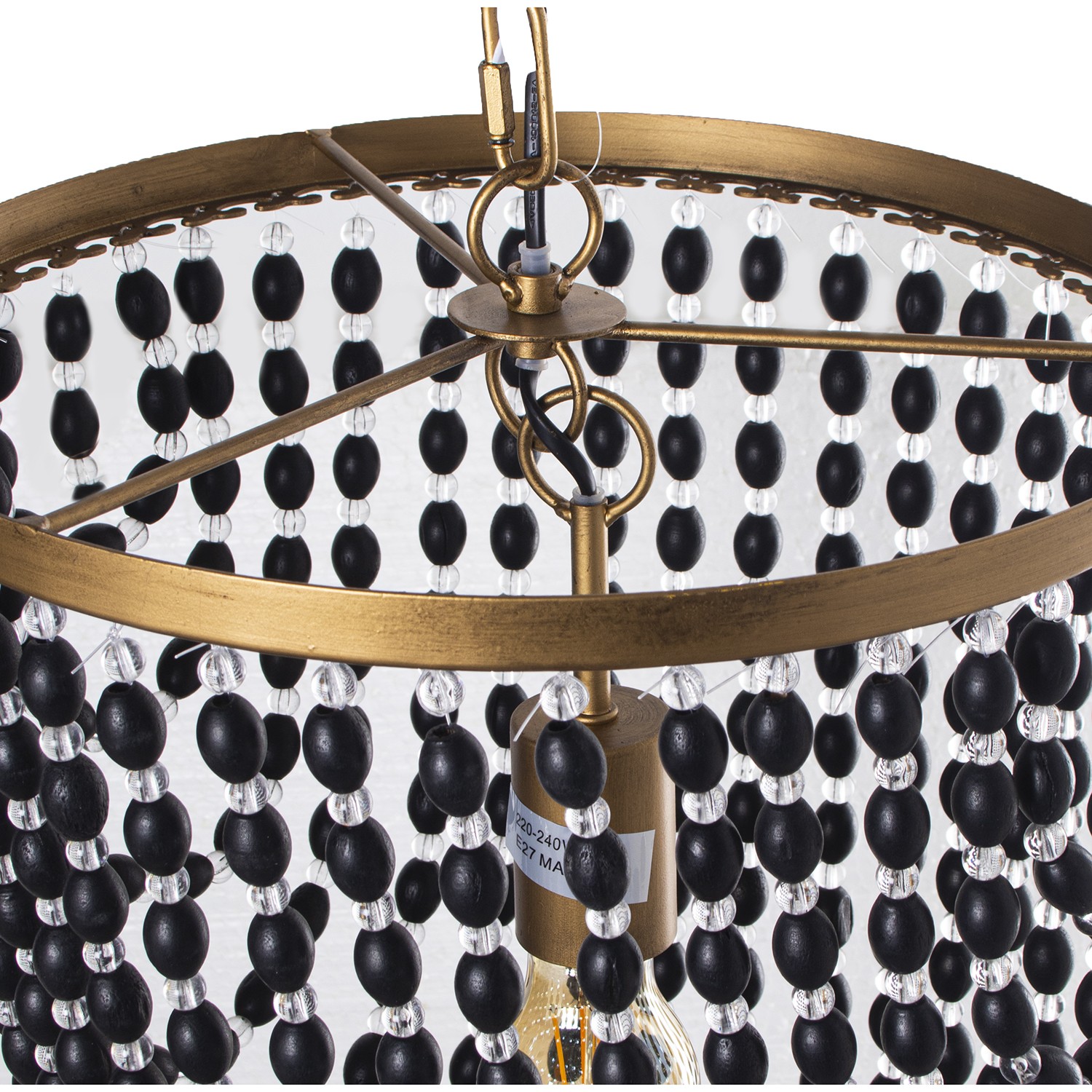 Lampe Suspension En Métal Fer Avec Perles En Bois - 1xe27, Max.60w- Ø35x61/160cm