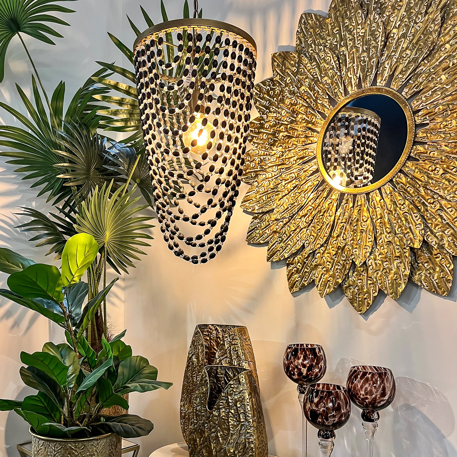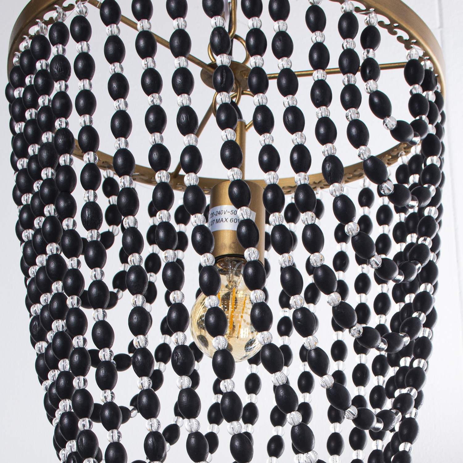 » Lampe Suspension En Métal Fer Avec Perles En Bois - 1xe27, Max.60w- Ø35x61/160cm