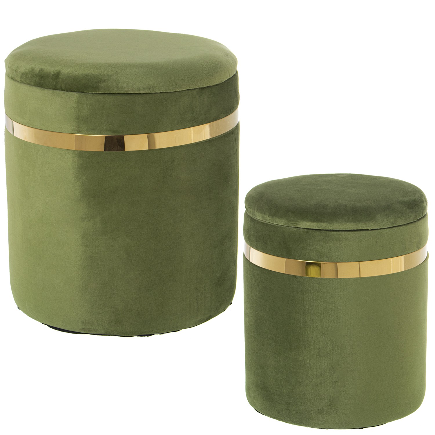 Set De 2 Poufs De Rangement En Velours - Vert- Ø38x44cm+ø33x38cm, Poliéster