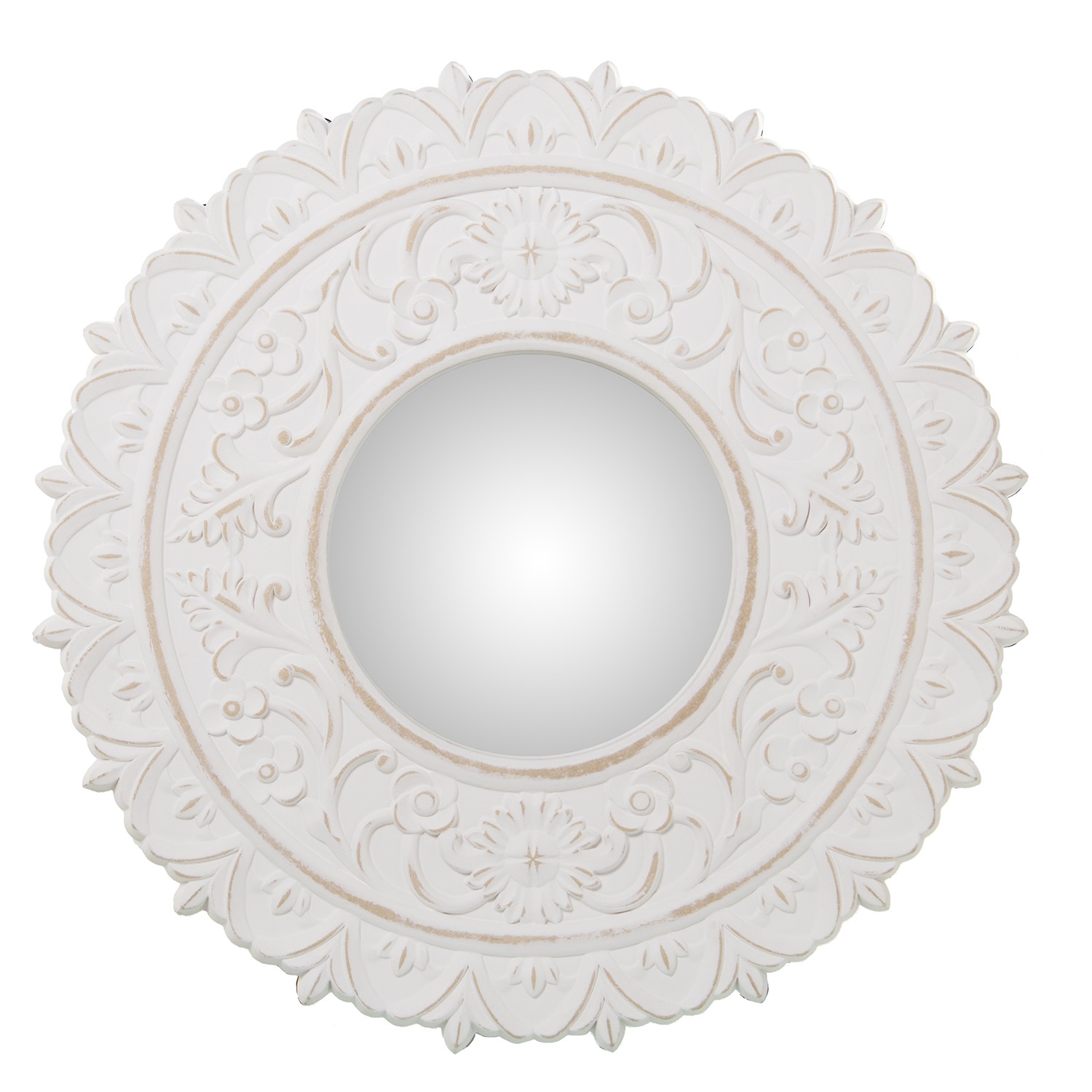» Miroir Rond En Bois - Blanc Décapé - Ø60cm - Int:ø24,5cm- Ø60x1,8cm, Int:ø24,5cm