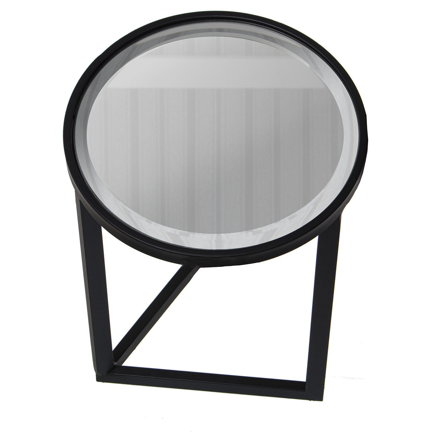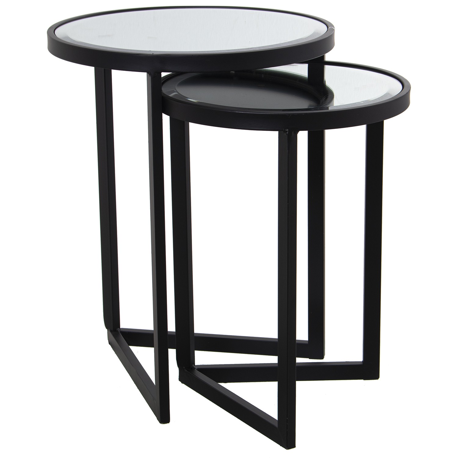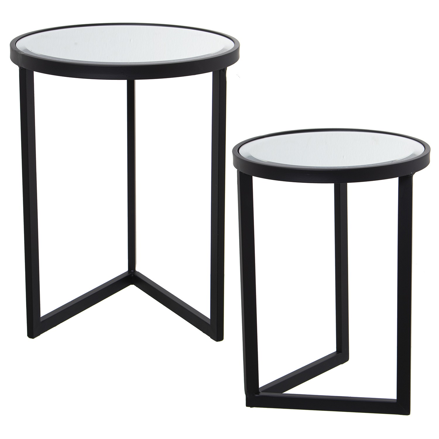 Set De 2 Tables En Métal - Noir Avec Plateau De Table Miroir- Ø42x54cm+ø36x48cm