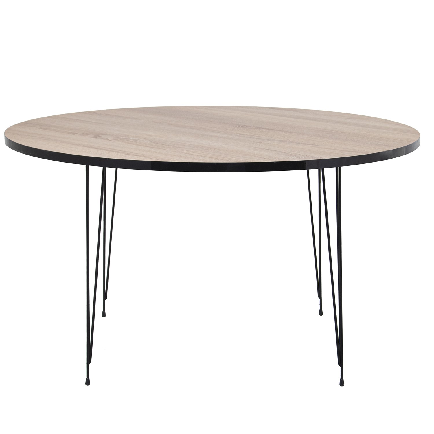 Table Basse Ronde En Chêne Av Ec Pieds Métal Noir- _ø89x45cm, Grosor:1,8cm