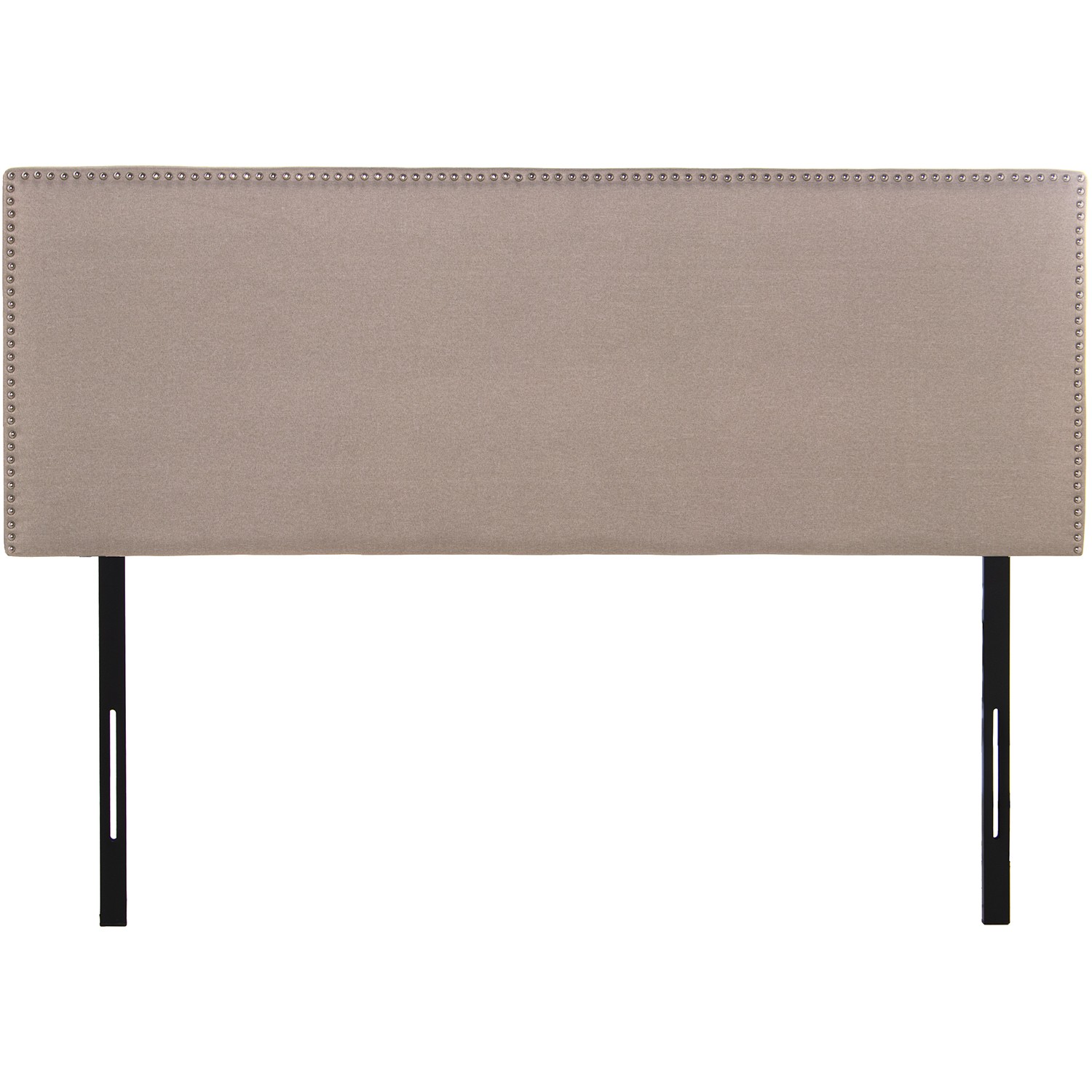 » Tête De Lit Tapissé En Polyester Beige - Pieds En Métal Noir- 160x7x117/127cm, Sup:160x57cm