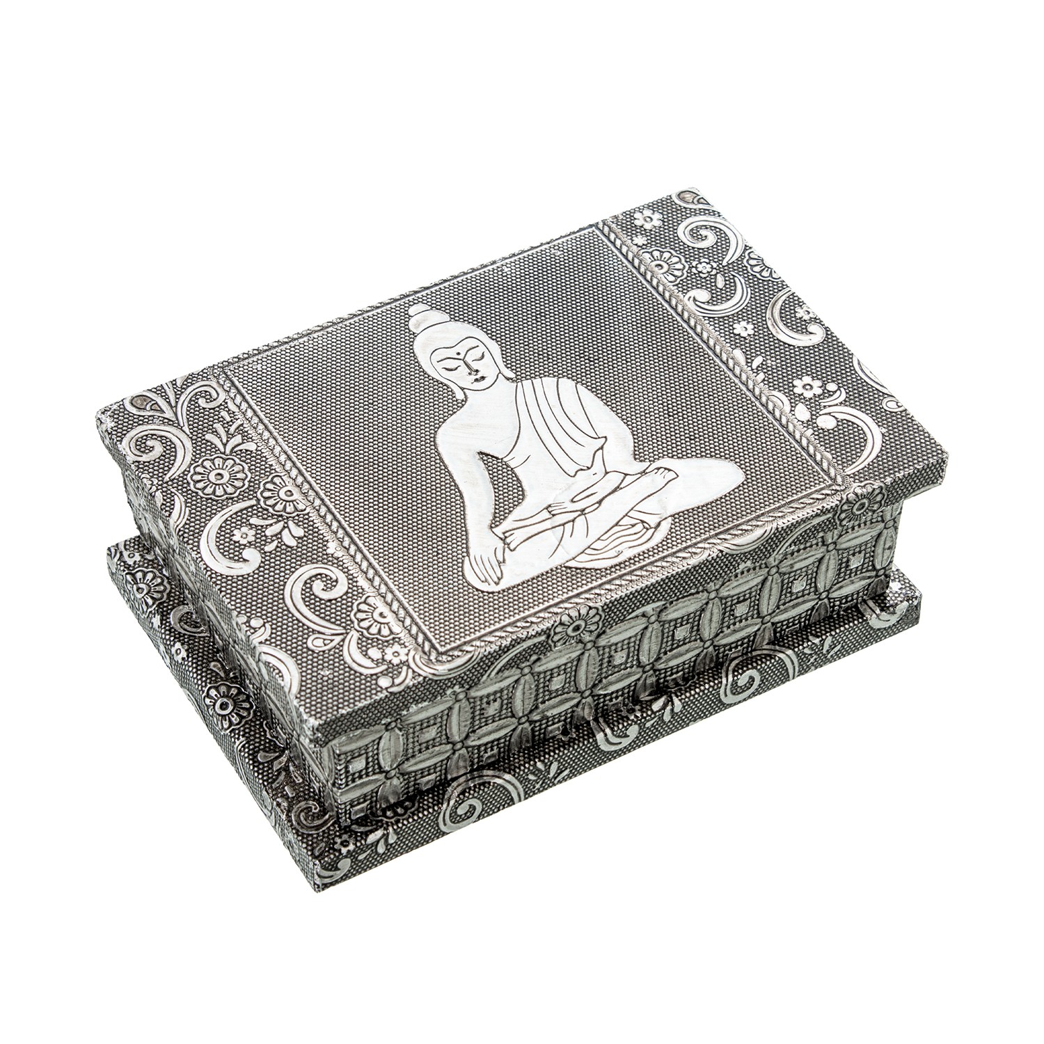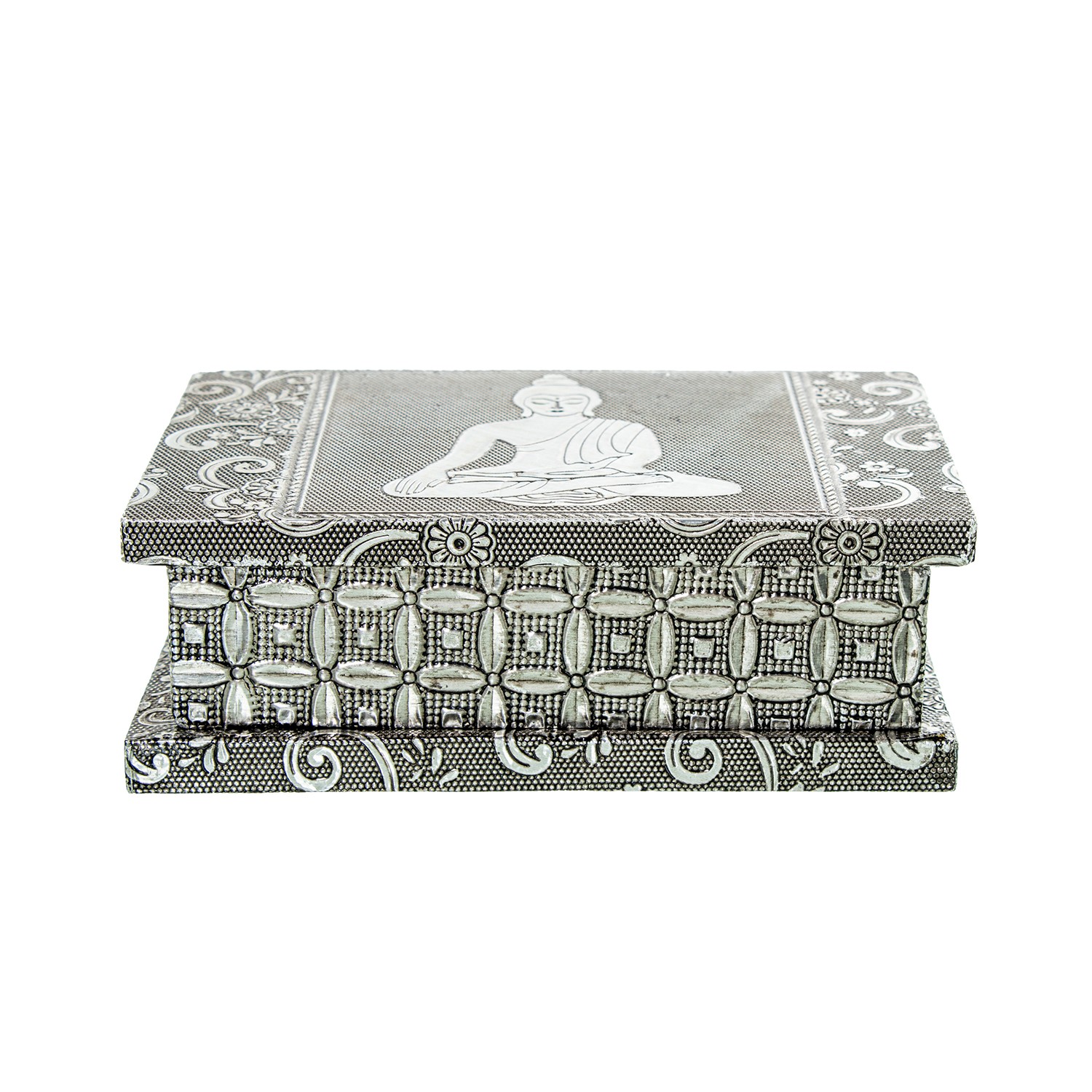 » Boîte À Bijoux En Métal Argenté, Decoration Bouddha_15x10x5cm