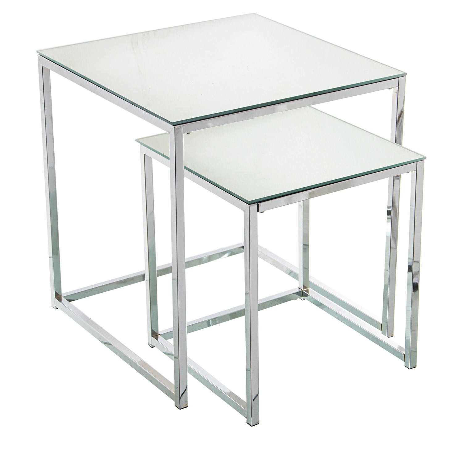 Set De 2 Tables D´appoint En Métal Et Miroir - Miroir: 5mm- 45x45x50cm+35x35x40cm