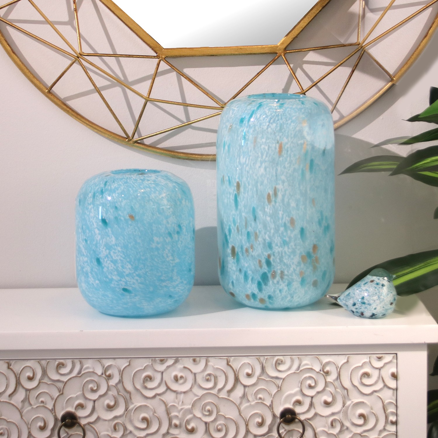 Vaso In Vetro - Blu Chiaro Marmorizzato- Ø19x21cm