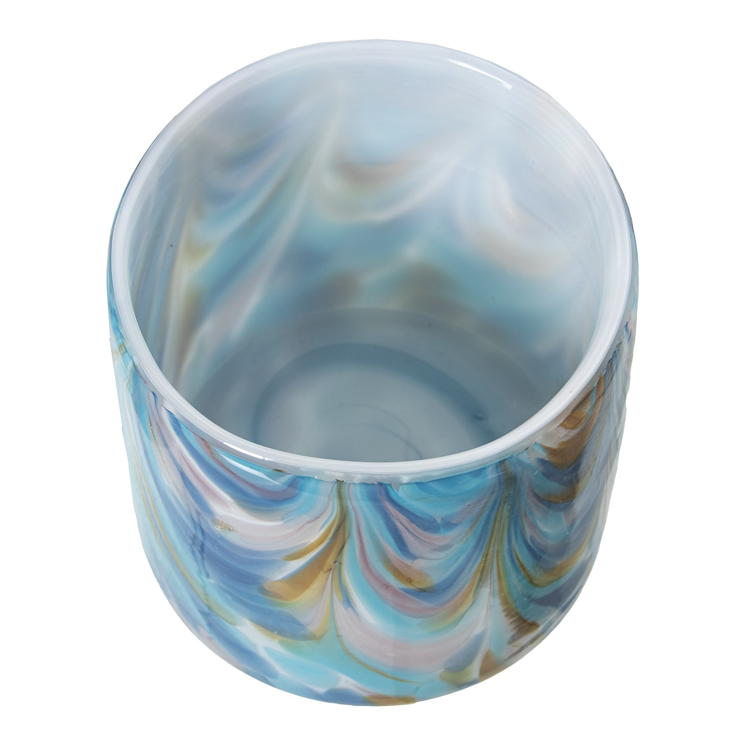 Portacandele In Vetro - Bianco E Azzurro Ø10x10cm
