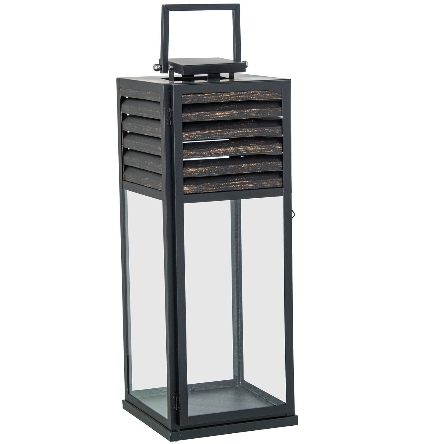 Lanterna In Metallo Nero/legno 20x21x54cm
