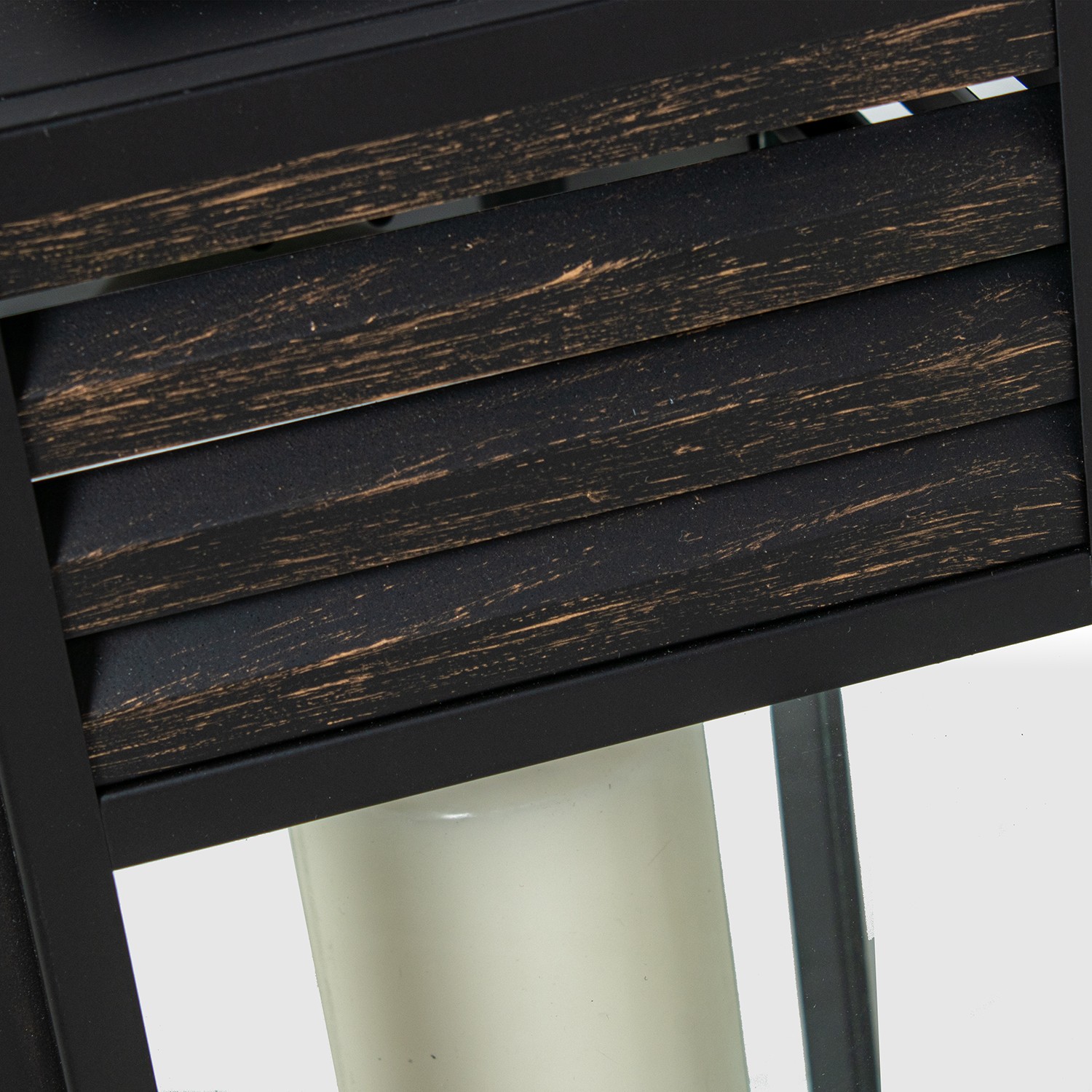 Lanterna In Metallo Nero/legno 20x21x44cm